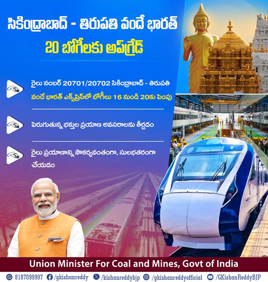 Joined Hon'ble Railway Minister Shri Ashwini Vaishnaw ji on board a train from Shankarpalli Railway station to Kazipet to review the progress of the Kazipet Rail Coach Factory (RMU), a major 'Make In India' project that will transform the rail infra in the state of Telangana. During the journey we discussed various Railway developmental projects pertaining to the state of Telangana. Elected representatives and Sr officials of SCR were also present.