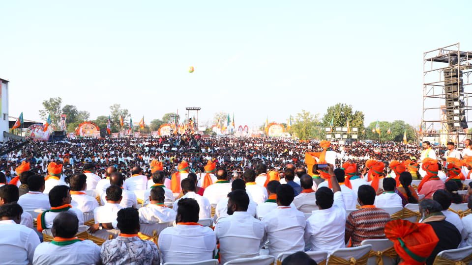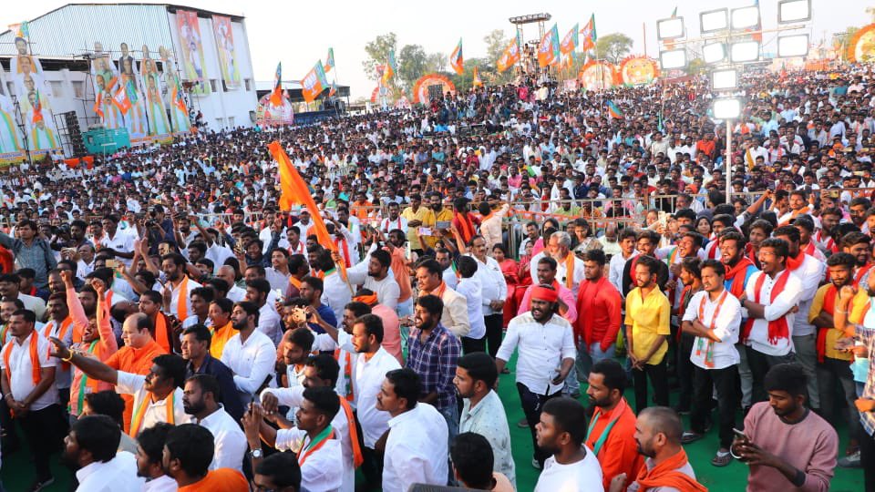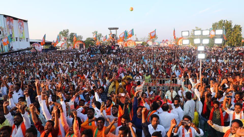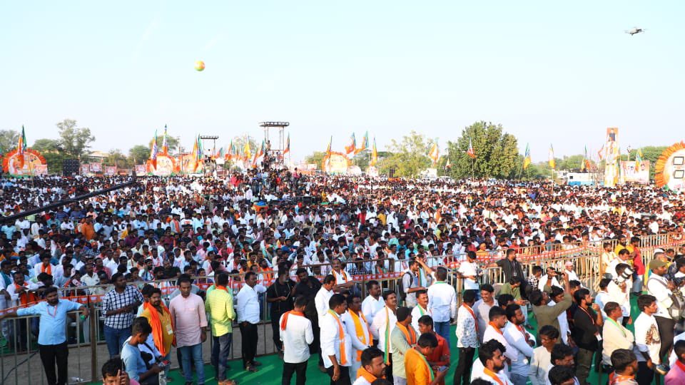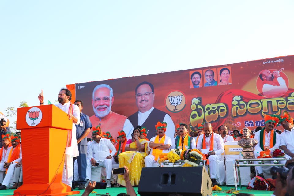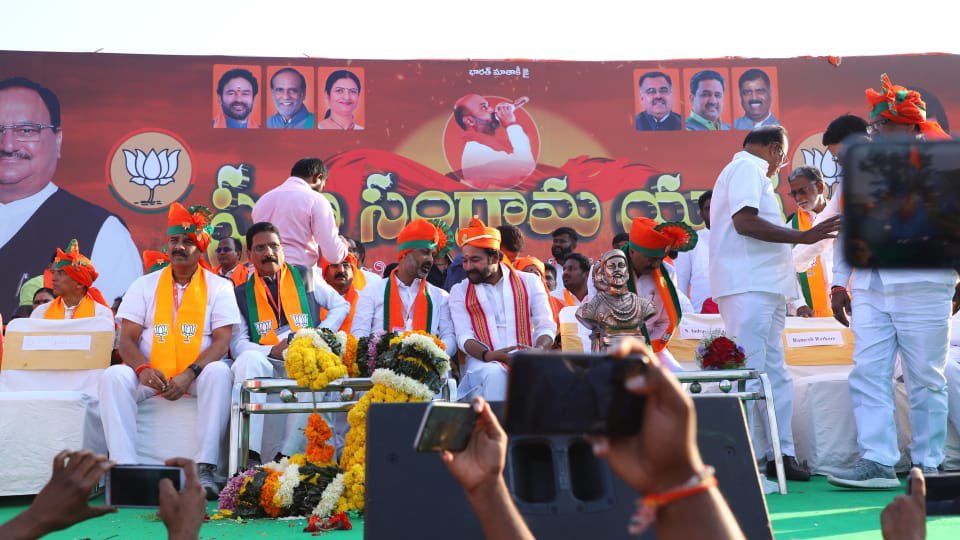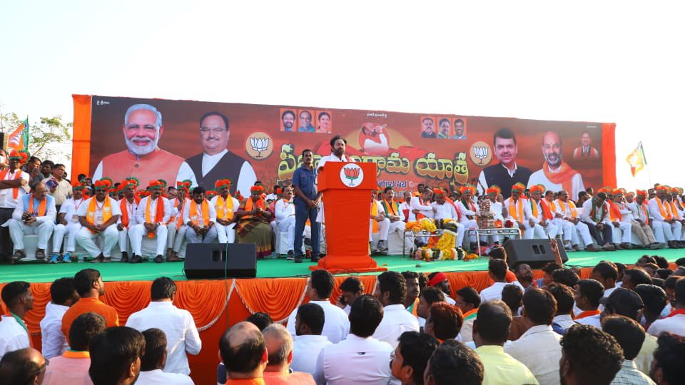 Attended and Addressed a meeting at the launch of 5th Praja Sangrama Yatra being undertaken by BJP Telangana President Shri Bandi Sanjay, (29-11-2022) today on the outskirts of Bhainsa, Telangana. Spoke on the dictatorial rule of KCR and how the opposition voices, elected representatives from opposition are being suppressed under the TRS rule. Recollected contributions and paid tributes to the martyrs who laid down their lives for the cause of Telangana statehood and several others who joined the movement in various ways. Also dwelt on how growth & development in the state is suffering because of misgovernance and corruption under the dynastic rule of TRS.