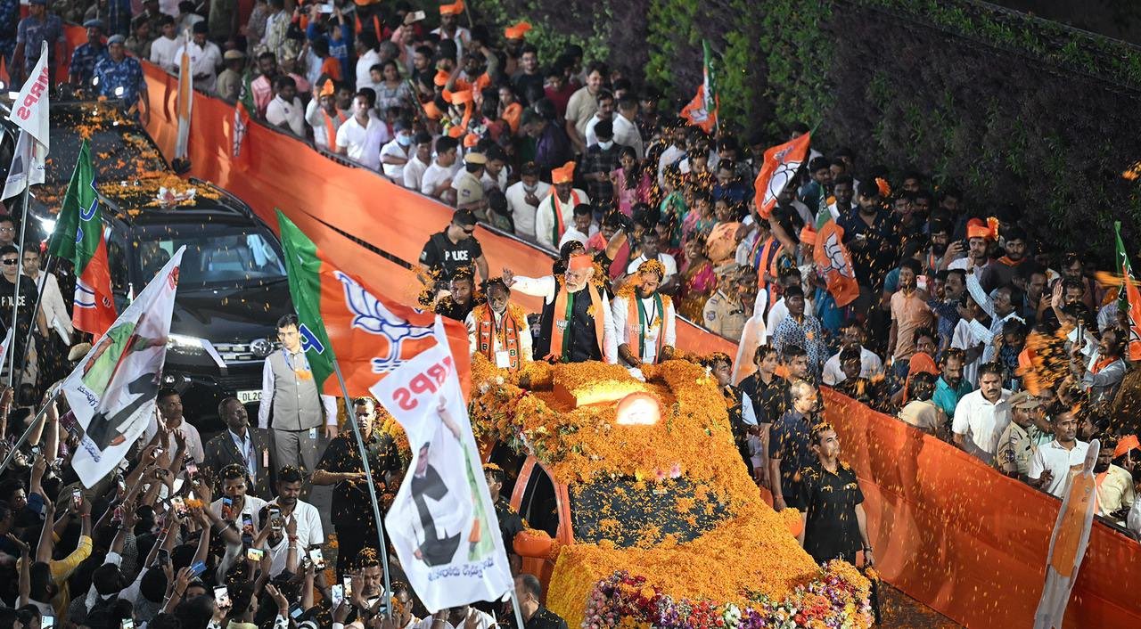 Sri Narendra Modi Road Show in Hyderabad on 27th November 2023 - joined in Koti Deepotsavam programme, A spectacular programme, and also Modiji paid obeisance to Guru Nanak ji at Ameerpet Gurudwara in Hyderabad, Telangana on the occasion of Guru Nanak Jayanti.