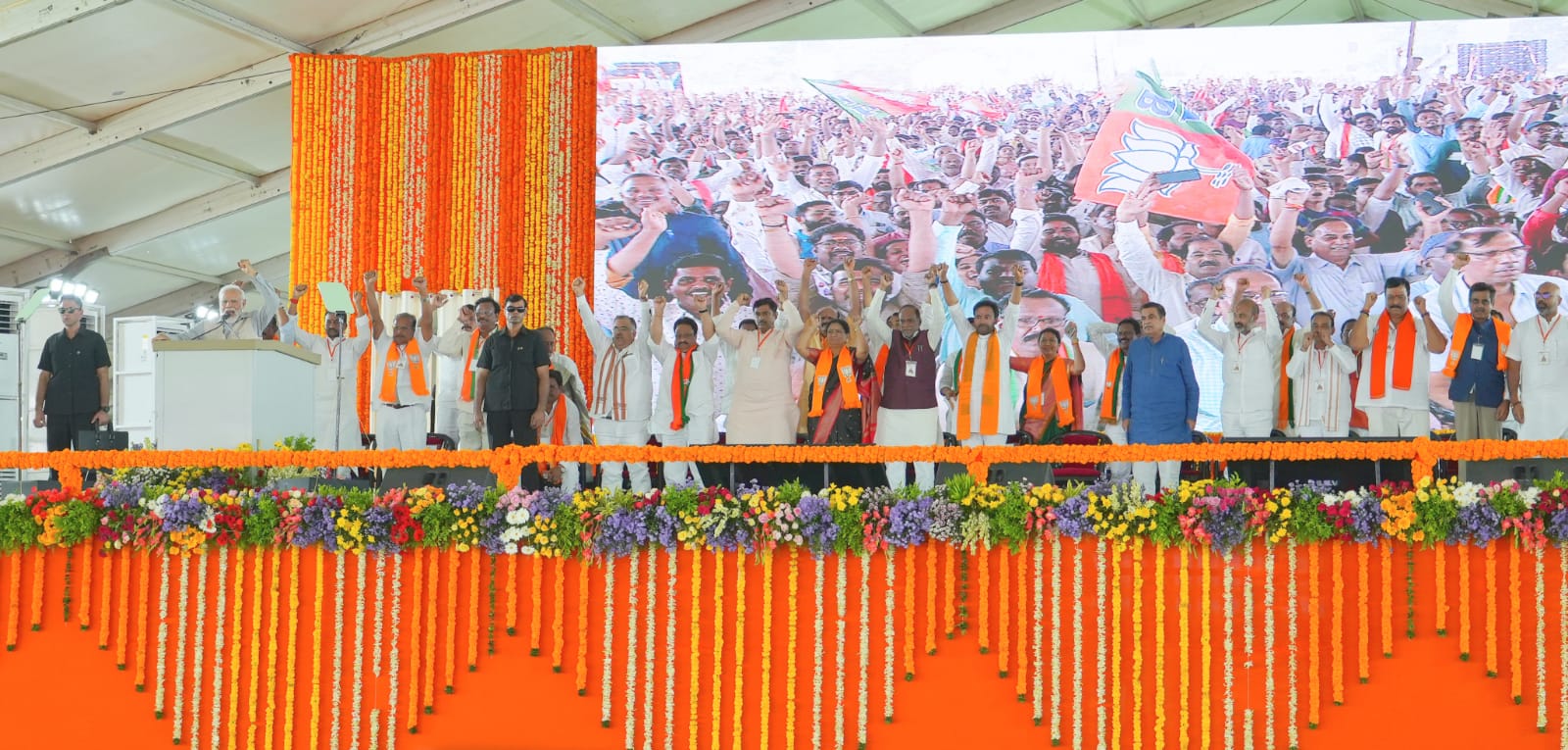 Thank You. Hon'ble PM Shri @NarendraModi, for giving impetus to development in Telangana with new infrastructure projects. I extend my heartfelt gratitude to you on behalf of the people of Telangana for your constant endeavors to ensure double-engine growth in the State. Your arrival has ignited new hope among the people of Telangana. Your message to all karyakartas at 'Vijay Sankalp Sabha' has further fueled their determination to make the BJP the number one party in the state. With the blessings of Goddess Bhadrakali, we will strive hard for the formation of a BJP government in Telangana by echoing Abki baar BJP Sarkar.