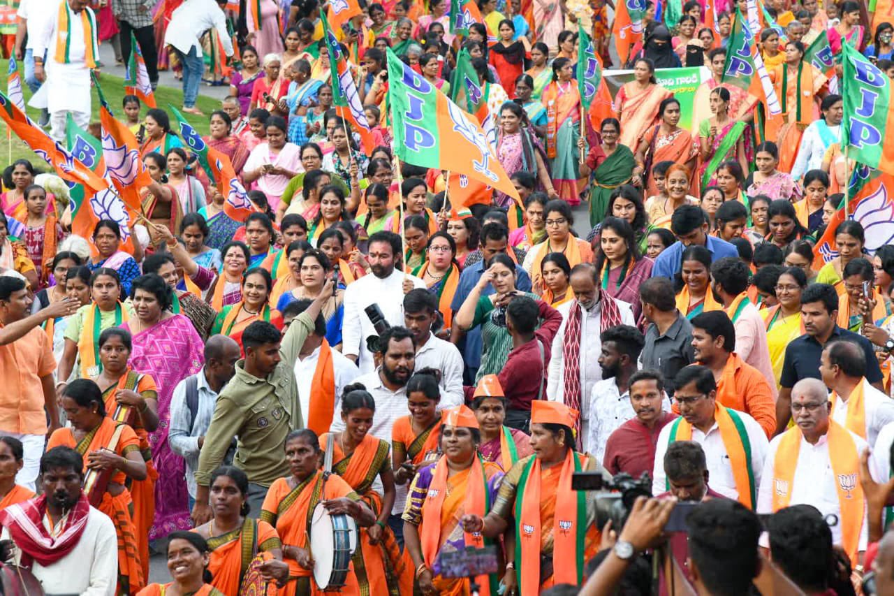 Celebrating the momentous occasion of the passage of the historic Women’s Reservation Bill (Nari Shakti Vandan Adhiniyam) the @BJP4Telangana Mahila Morcha undertook an impressive rally from the martyrs memorial to BJP State office Nampally on 24th September 2023.