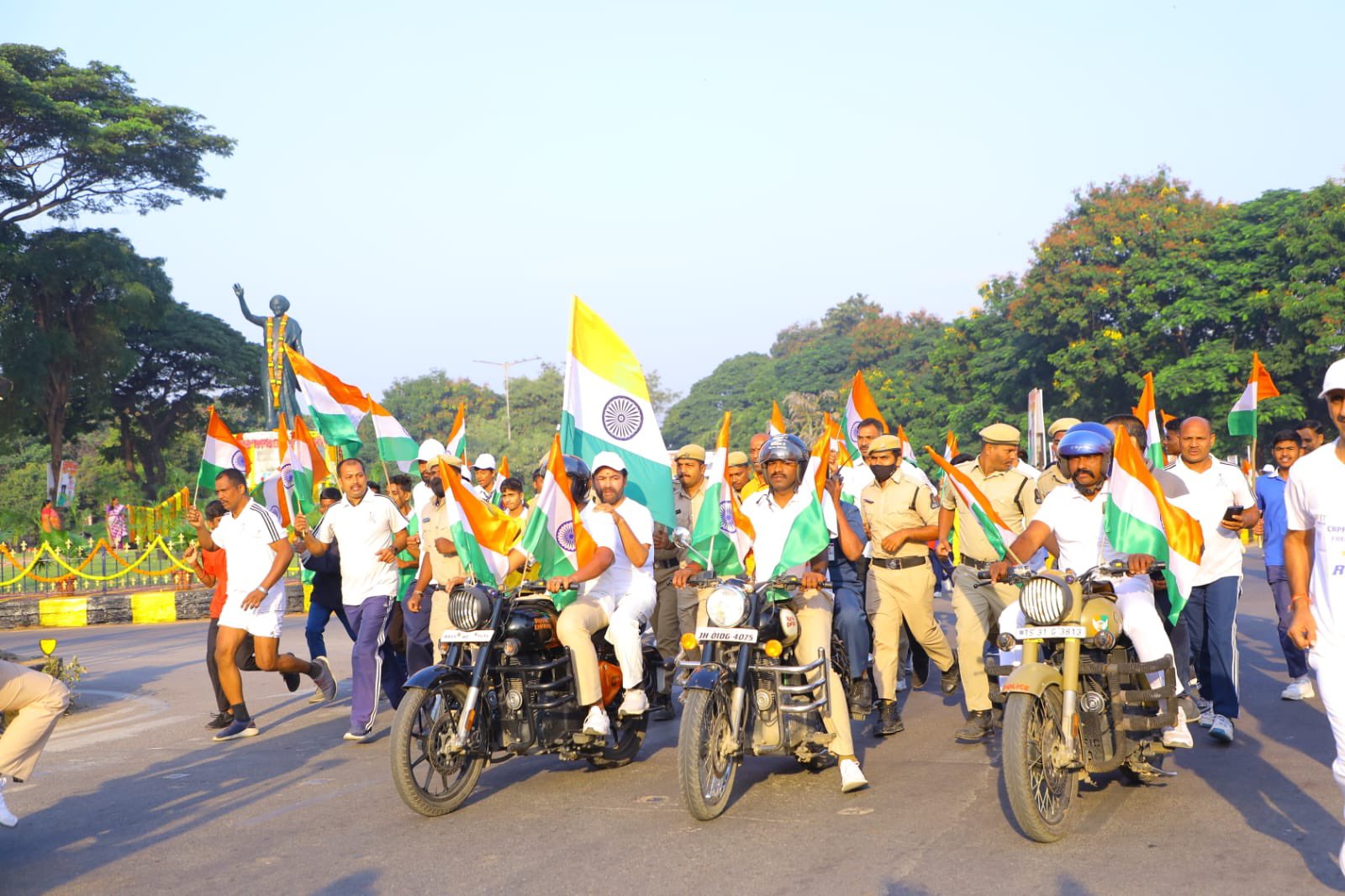 Participated in #RunForUnity Marathon in Hyderabad today, in commemoration of #EktaDiwas celebrated to mark the birth anniversary of Sardar Vallabhbhai Patel. During my address at the flag-off of the marathon, spoke on the role of Sardar Patel in unifying India especially in liberating Hyderabad from the clutches of Nizam rule. Paid tributes to Sardar Patel. My appreciation to all the students, members of NYK, personnel of the CAPFs, Bank officers and others who have participated in this Marathon, in large numbers.