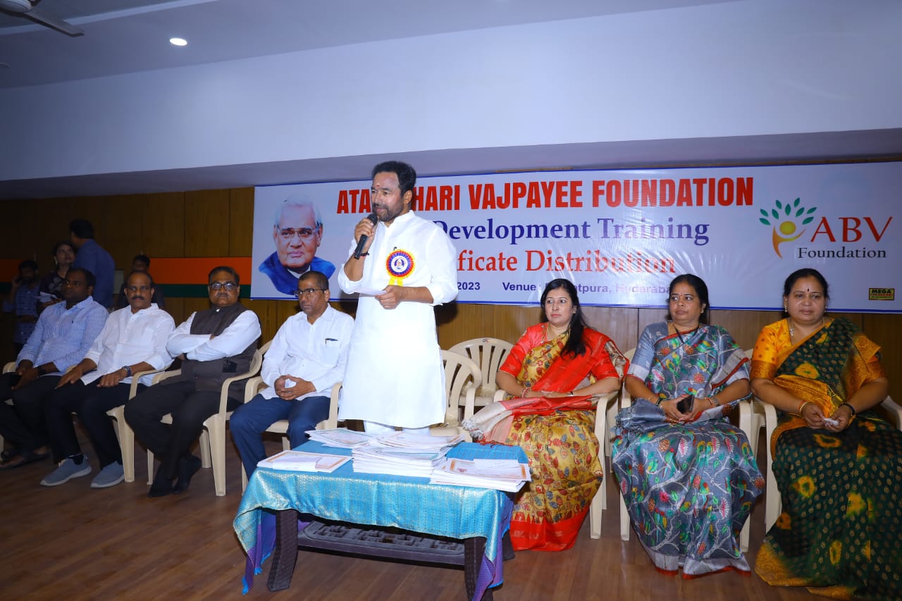 అటల్ బిహారి వాజపేయి ఫౌండేషన్ ఆధ్వర్యంలో వివిధ రంగాల్లో శిక్షణ పూర్తి చేసుకున్న వారికి బర్కత్పురా లో ని BJP సిటీ కార్యాలయం సర్టిఫికెట్ లు అందజేసిన కేంద్రమంత్రి కిషన్ రెడ్డి గారు
