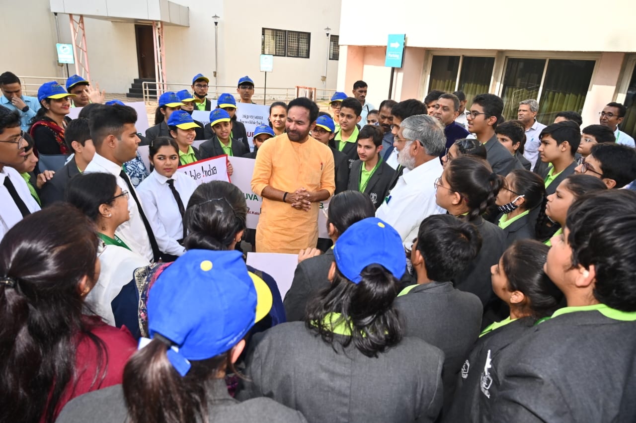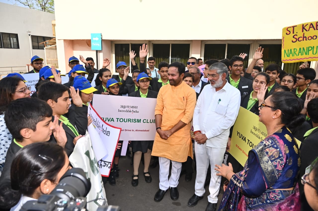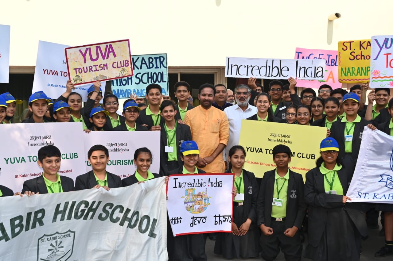 Glad to see the enthusiasm of students from the Tourism Clubs of several schools in Ahmedabad. Interacted with them and encouraged them to visit our country's tourist destinations and become young ambassadors for Indian tourism .