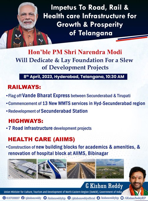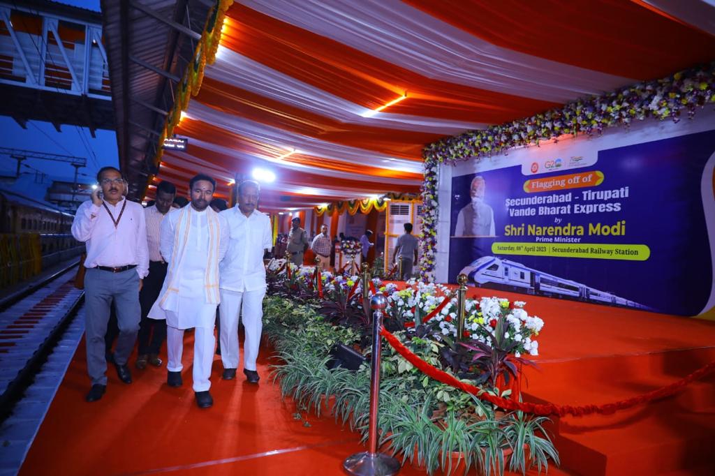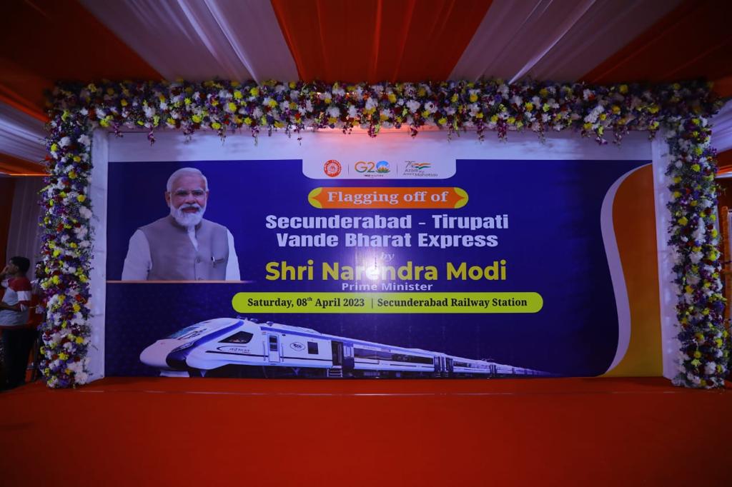Hon’ble PM Shri Narendra Modi flagged off Secunderabad-Tirupati Vande Bharat Express from Secunderabad Railway Station on 8th April 2023. It will connect the Twin Cities of Secunderabad-Hyderabad with Tirupati and provide unmatched travel experience to pilgrims.