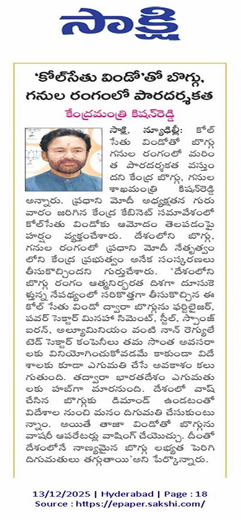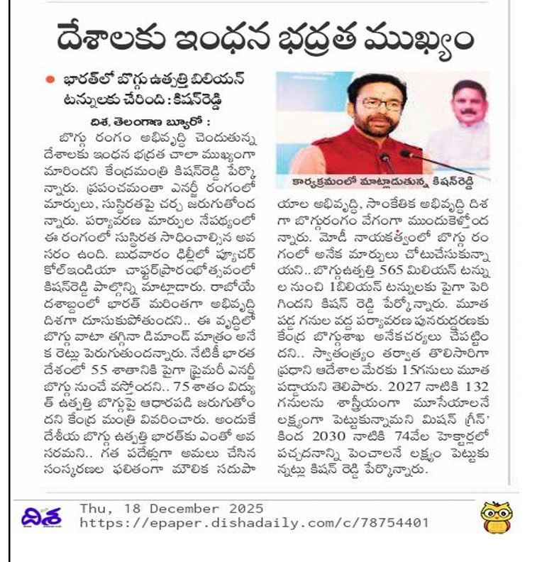పదేళ్లలో బొగ్గు రంగంలో ఎన్నో విజయాలు - కిషన్ రెడ్డి.