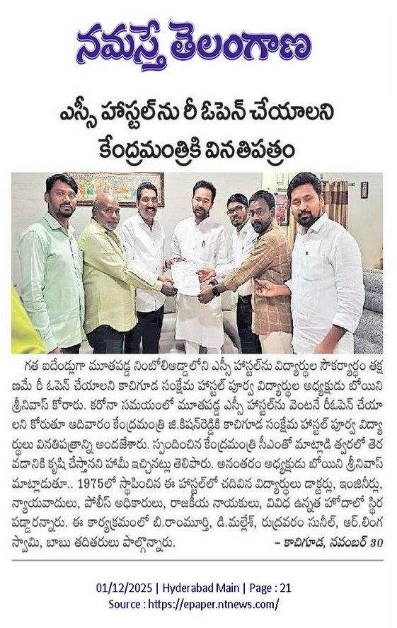 ఎస్సి హాస్టల్ రి ఓపెన్ చేయాలని కేంద్రమంత్రికి వినతిపత్రం.