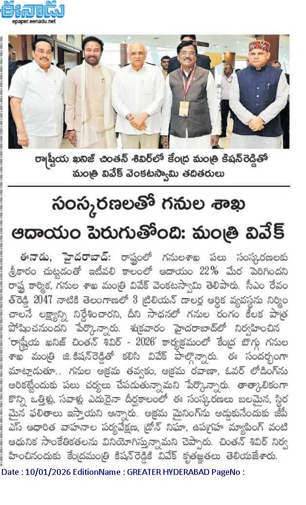 సంస్కరణలతో గనుల ఆదాయం పెరుగుతోమ్ది - మంత్రి వివేక్.