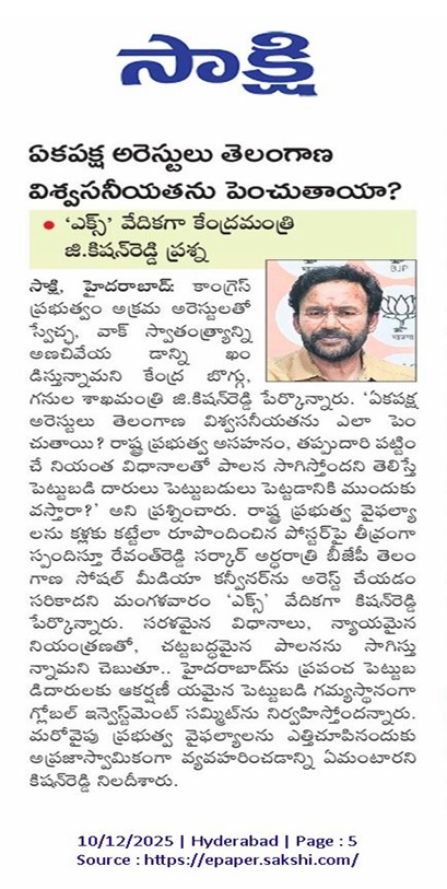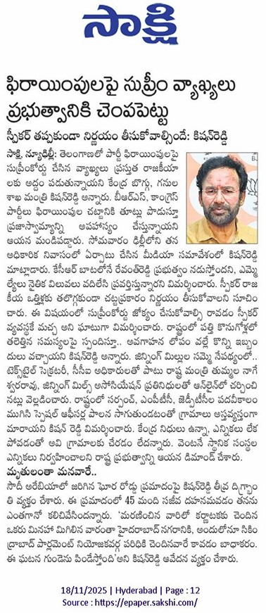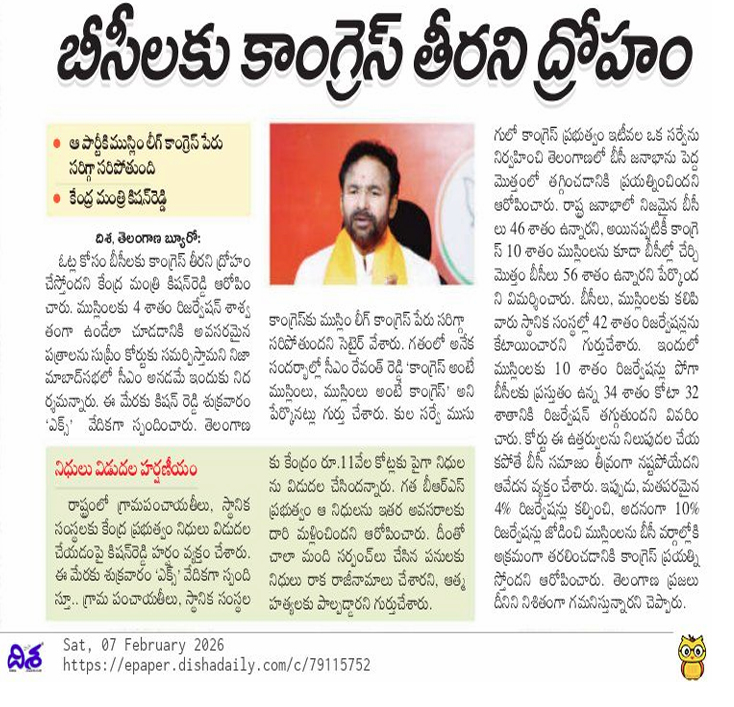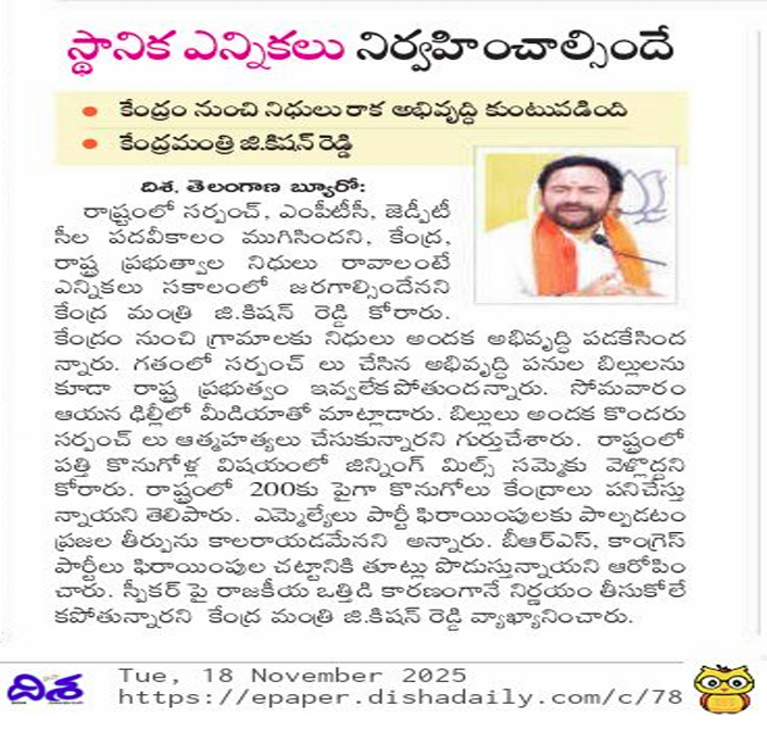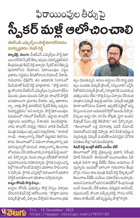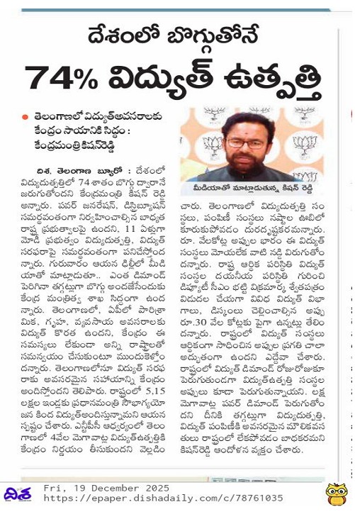 అప్పుల్లో తెలంగాణ డిస్కమ్స్ - కాంగ్రెస్, బి.ఆర్.ఎస్. వల్లే - కిషన్ రెడ్డి.