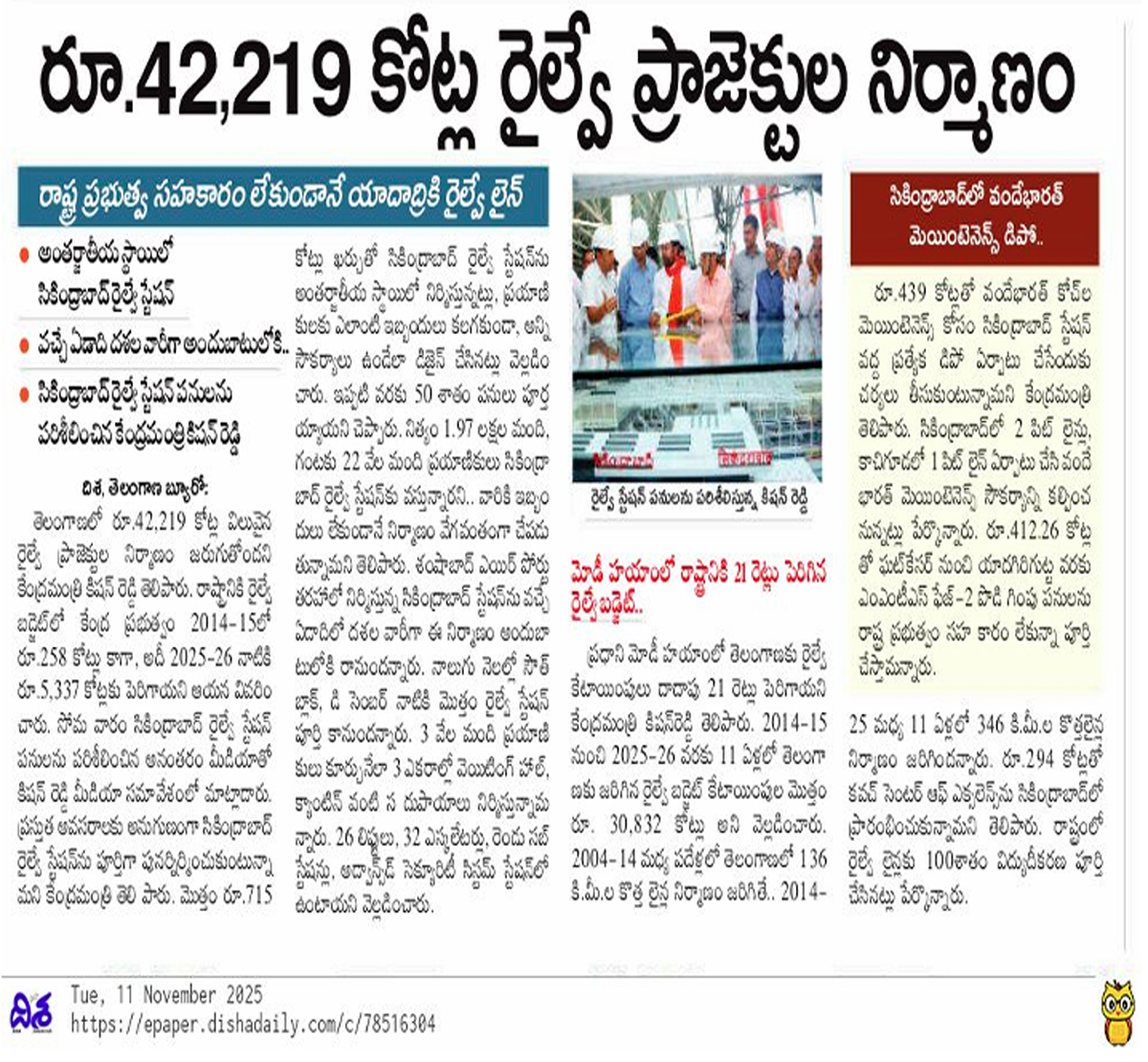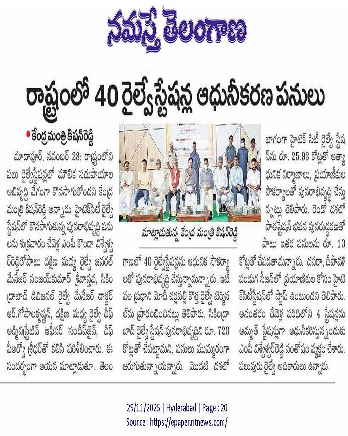 Kishan Reddy Reviews Hi-Tech Railway Station upgrade
