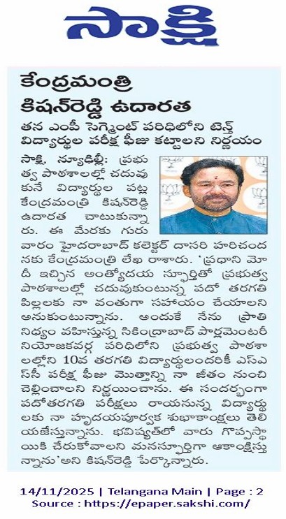 కేంద్రమంత్రి కిషన్ రెడ్డి ఉదారత