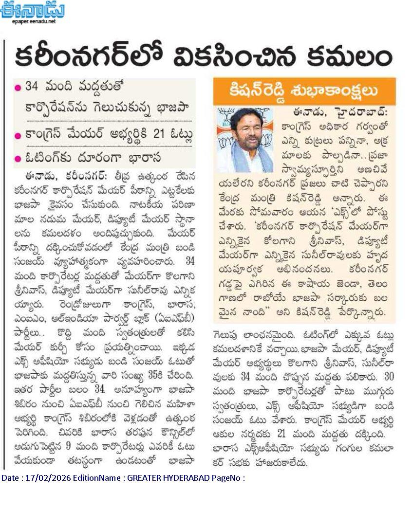BJP to fight alone in local body Elections says Kishan Reddy.