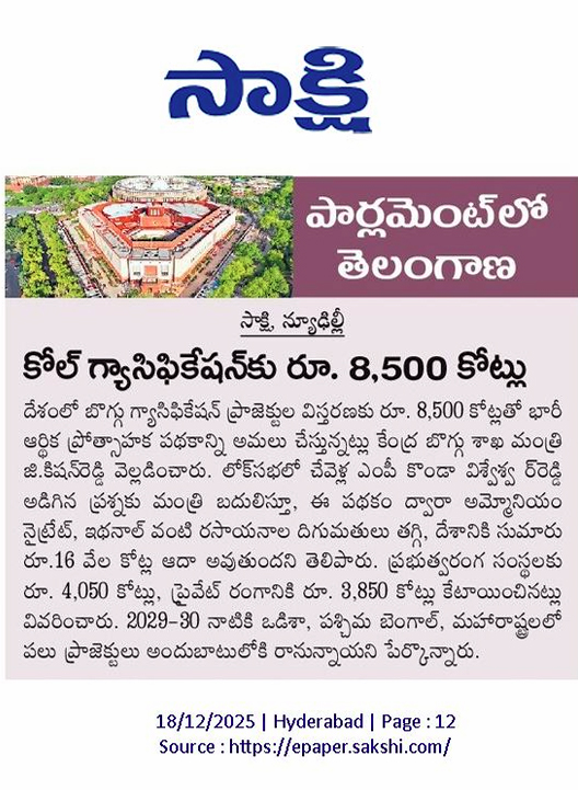 కోల్ గ్యాసిఫికేషన్ కు 8500 కోట్లు