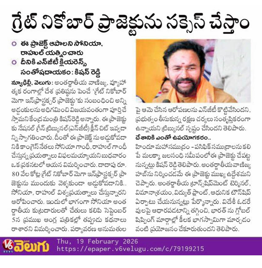 గ్రేట్ నికోబార్ ప్రాజెక్టును సక్సెస్ చేస్తాం.