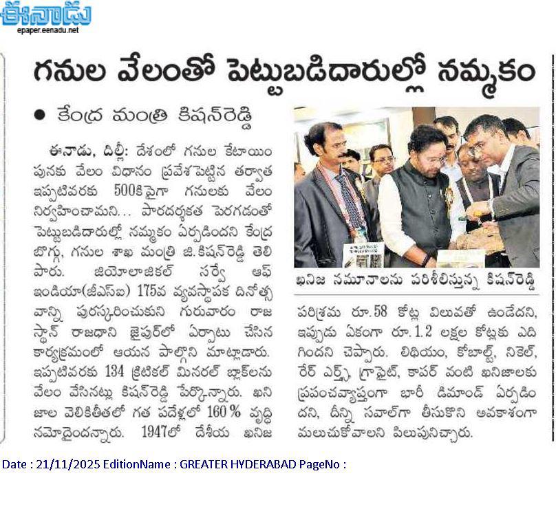 గనుల వేలంతో పెట్టుబడిదారుల్లో నమ్మకం.