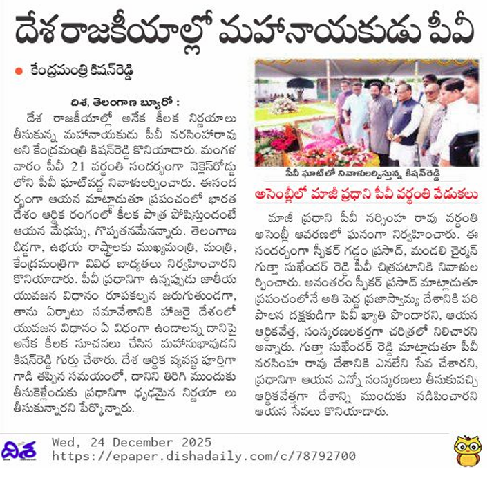 దేశ రాజకీయాల్లో మహానాయకుడు పి.వి.