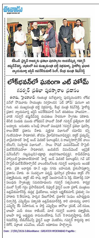 లోక్ భవన్ లో ఘనంగా ఎట్ హోమ్ 'గవర్నర్ ప్రతిభా పురస్కారాల ప్రదానం'