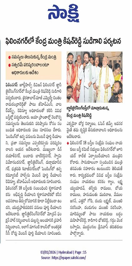 ఫిలిం నగర్ లో కేంద్ర మంత్రి సుడిగాలి పర్యటన.
