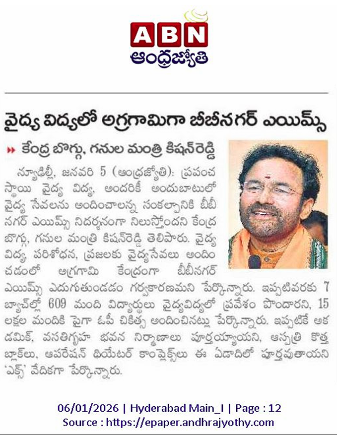 వైద్య విద్యలో అగ్రగామిగా బిబి నగర్ ఎయిమ్స్.