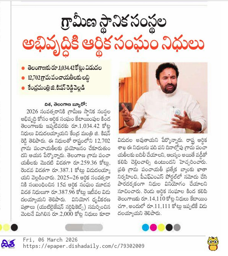 జిపిలకు నిధులపై కిషన్ రెడ్డి హర్షం.