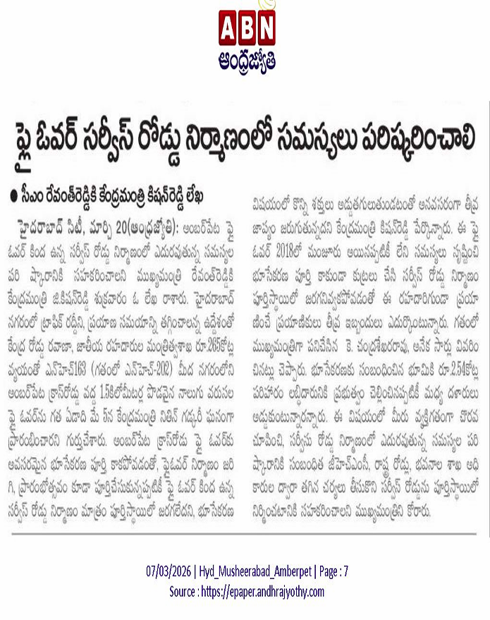 ఫ్లై ఓవర్ సర్వీస్ రోడ్డు నిర్మాణంలో సమస్యలు పరిష్కరించండి
