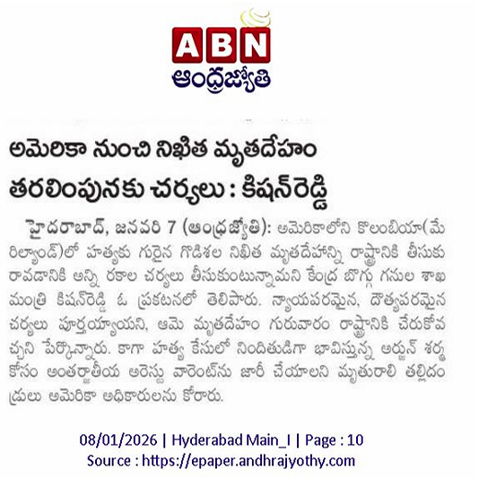 అమెరికా నుంచి నిఖిత మృతదేహం తరలింపునకు చర్యలు.