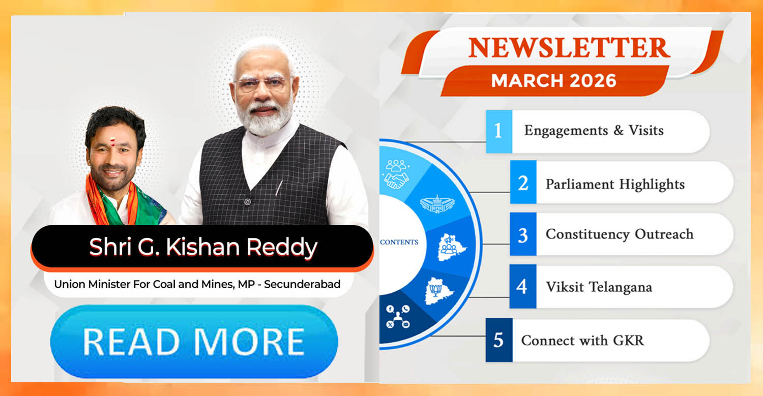 Download English Profile Here Download Telugu Profile HereG. Kishan Reddy (Born: 15th June, 1964), who people affectionately and reverentially call ‘Kishananna’, is a live example of what one can achieve through sheer determination and hard work. His calm demeanour betrays his inner strength. In the 18th Lok Sabha election, 2024, he is re-elected as Member of Parliament from Secunderabad Parliamentary Constituency, Telangana. Earlier in the 17th Lok Sabha election, 2019, he won with the margin of 62,144 votes over his nearest rival from the same constituency. He was earlier a three-time MLA and BJP Floor leader in Telangana and Andhra Pradesh Assembly. He earned a special niche for himself in the hearts and minds of people by foregrounding their aspirations and grievances and making sincere endeavours in anchoring them. Gangapuram Kishan Reddy was born in a middle class farmers’ family in backward Ranga Reddy District. Inspired by Lokmanya Jayaprakash Narayan who was the mascot in the fight against corruption and emergency, Kishan Reddy started his political career as a Yuva Karyakartha (youth worker) in Janata party. He joined the BJP on its inception in the year 1980.