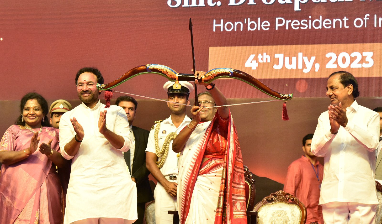4-7-2023-హైదరాబాద్ లో జరిగిన అల్లూరి సీతారామరాజు 125వ జయంతి ఉత్సవాల ముగింపు వేడుకలలో పాల్గొన్నాను. కేంద్ర సాంస్కృతిక మంత్రిత్వ శాఖ ఆధ్వర్యంలో ప్రధానమంత్రి శ్రీ నరేంద్రమోది గారి చేతుల మీదుగా ప్రారంభించబడి ఏడాది పాటు స్మరించుకుంటూ నిర్వహించిన ఈ వేడుకలు విప్లవ వీరుడు, రంప తిరుగుబాటు నాయకుడు శ్రీ అల్లూరి సీతారామరాజు గారికి చిరకాల గుర్తింపుతో పాటు, భారత సంస్కృతి, గిరిజనులకు, స్వాతంత్ర్య సంగ్రామంలో వారు చూపిన తెగువ, పరాక్రమం, అందించిన సహకారానికి మంచి గుర్తింపునిచ్చాయి. ఈ వేడుకలను ఉద్దేశించి గౌరవ భారత రాష్ట్రపతి గారు మాట్లాడుతూ అన్యాయం, దోపిడీపై అల్లూరి సీతారామరాజు చేసిన పోరాటాలు భారత స్వాతంత్ర్య సంగ్రామంలో ఒక గర్వించదగిన అధ్యాయమని అన్నారు. అల్లూరి దేశభక్తి, ధైర్యసాహసాలను గురించి ప్రజలంతా ముఖ్యంగా నేటి యువత తెలుసుకోవాలన్నారు. గౌరవ భారత రాష్ట్రపతి శ్రీమతి ద్రౌపది ముర్ము ఈ వేడుకలను ప్రారంభించి, ప్రసంగించారు. గౌరవ రాష్ట్ర గవర్నర్ శ్రీమతి తమిళసై, గౌరవ తెలంగాణ రాష్ట్ర ముఖ్యమంత్రి కూడా ఈ వేడుకలలో పాల్గొన్నారు.