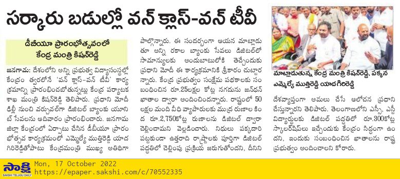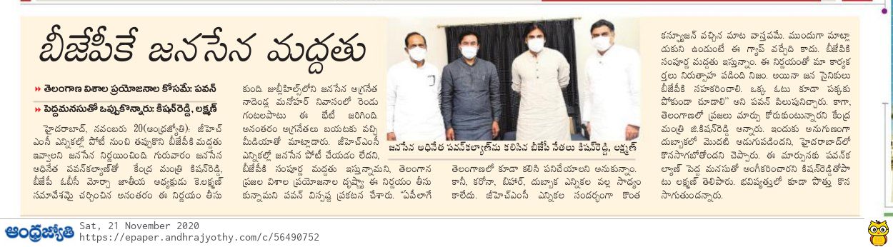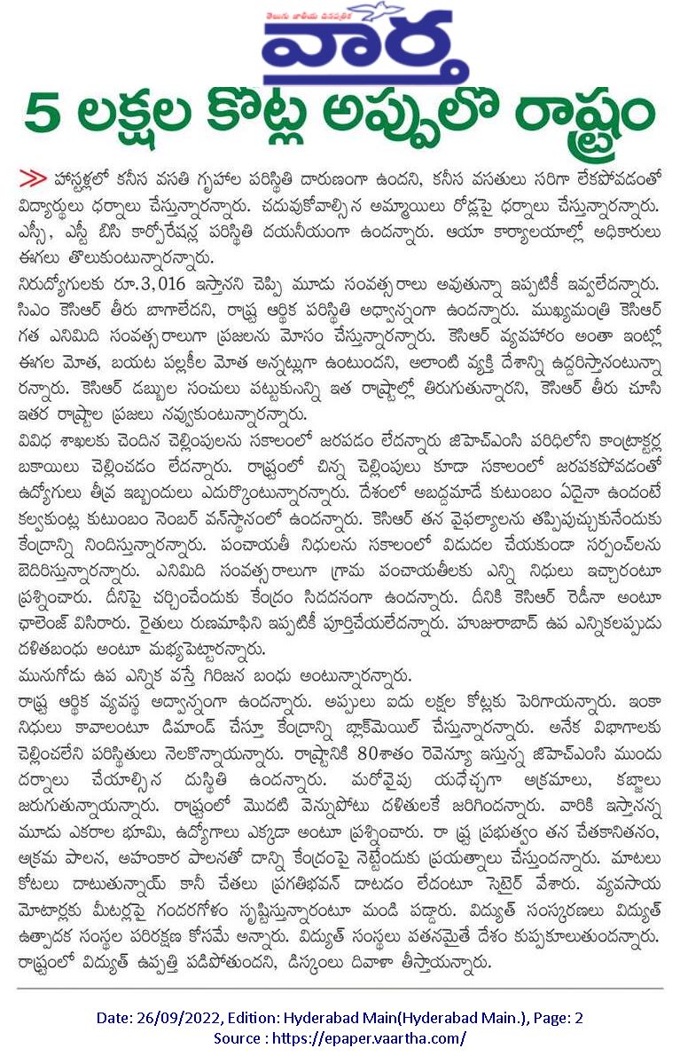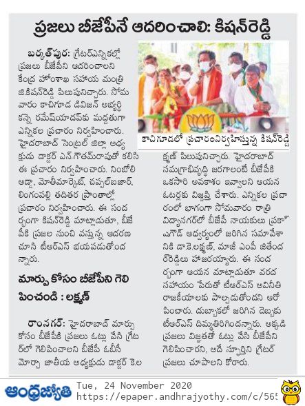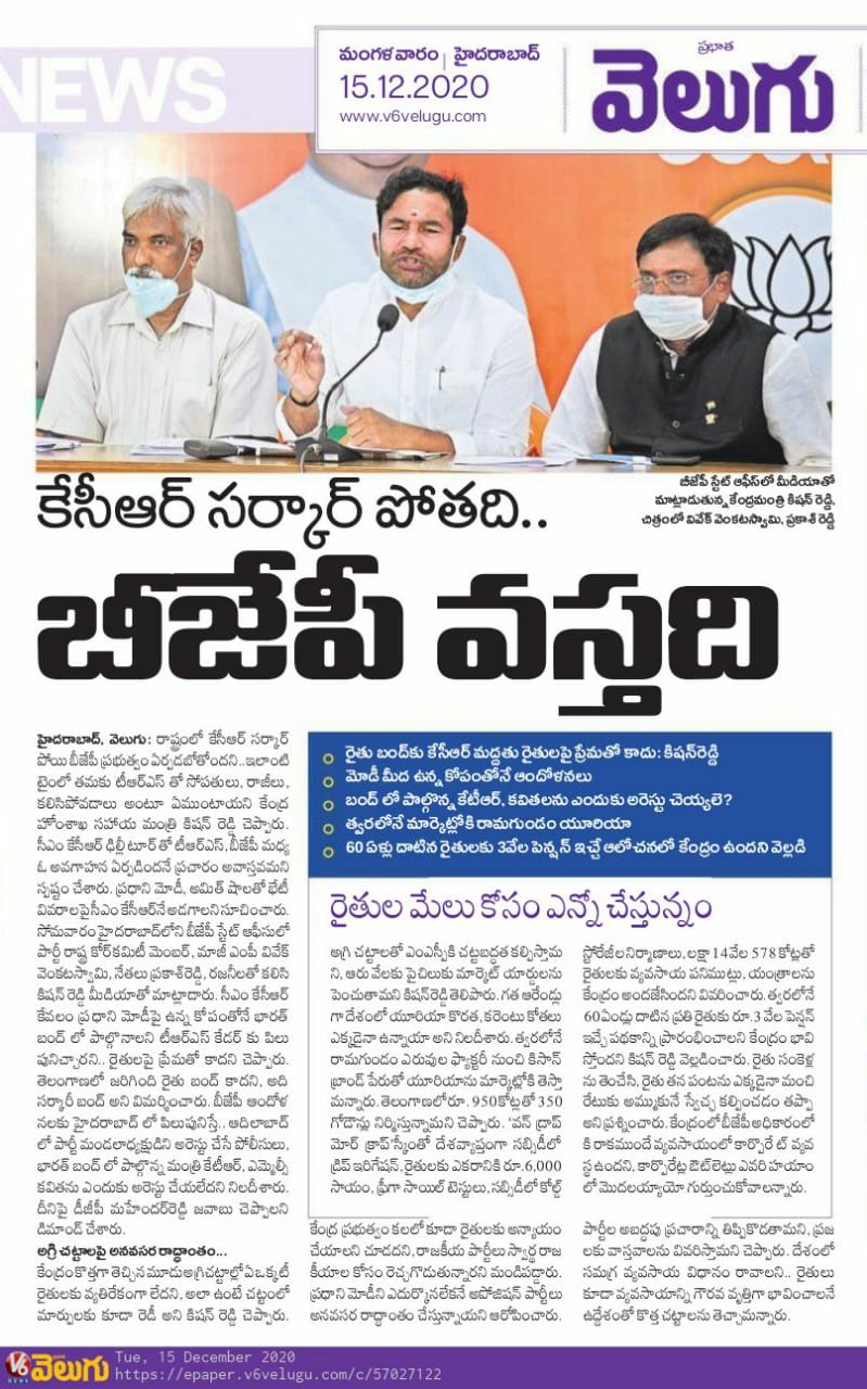 రాష్టంలో తండ్రికొడుకుల ప్రభుత్వం : కేంద్ర హోం శాఖ సహాయ మంత్రి జి. కిషన్ రెడ్డి – 20.01.2020 ఆంధ్రజ్యోతి