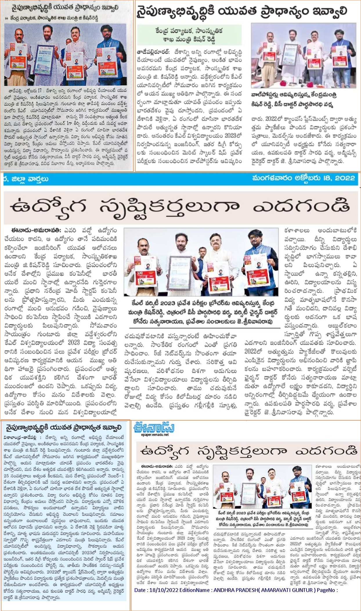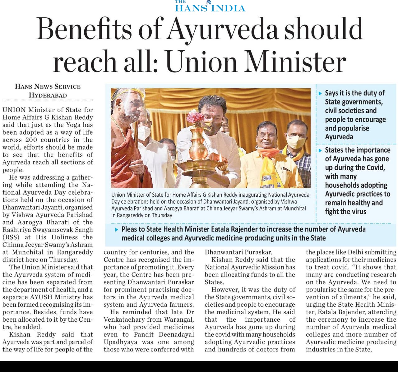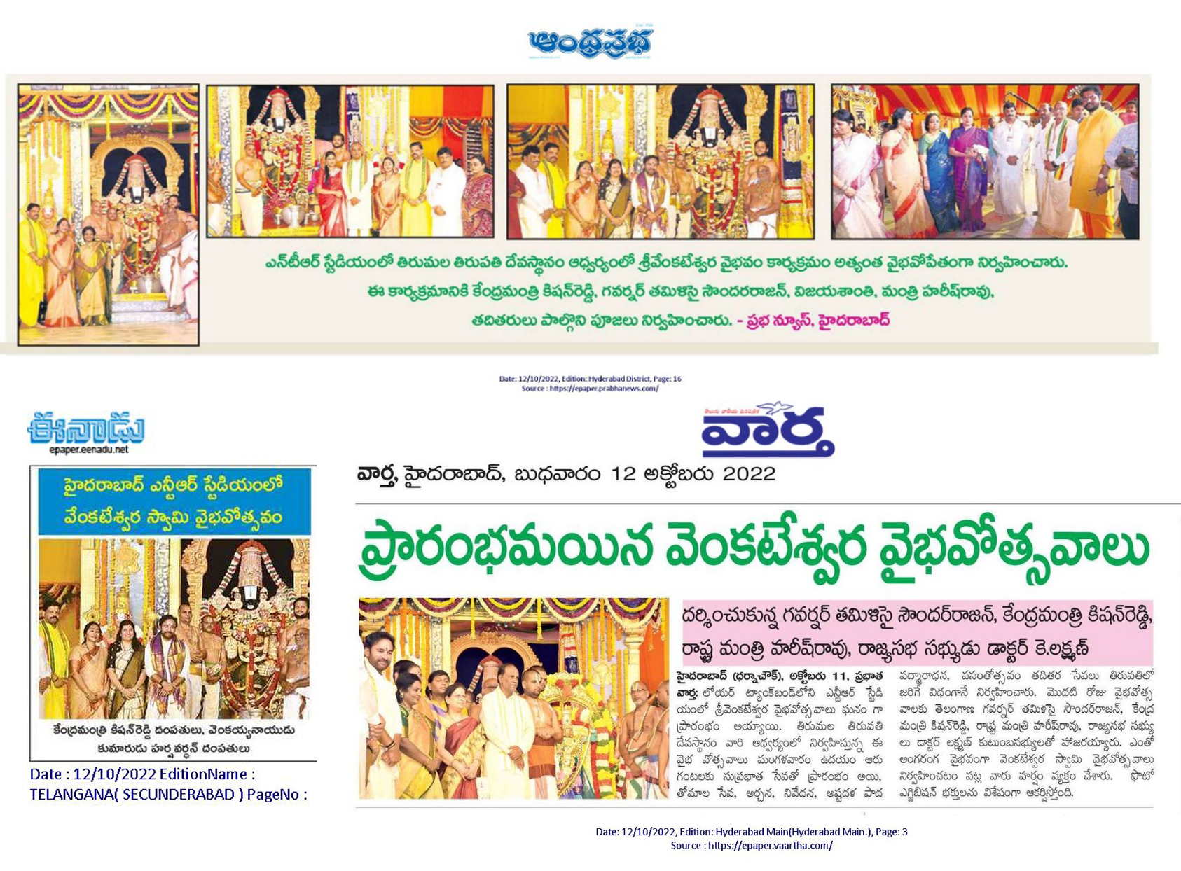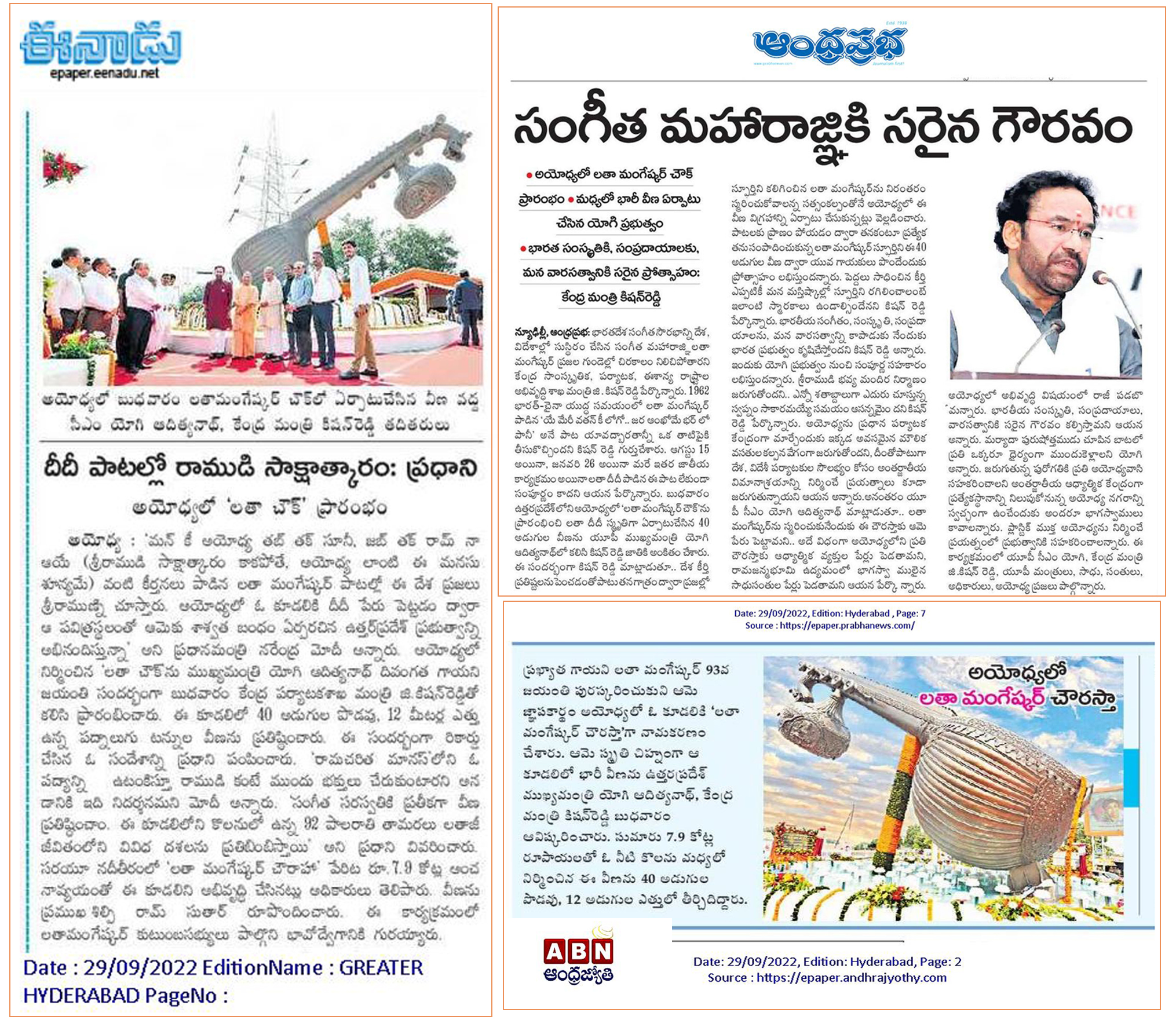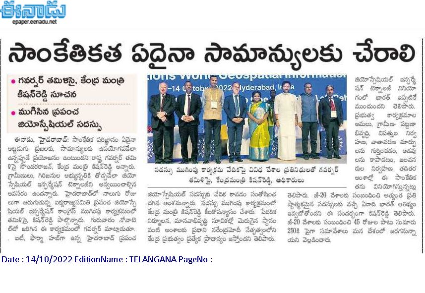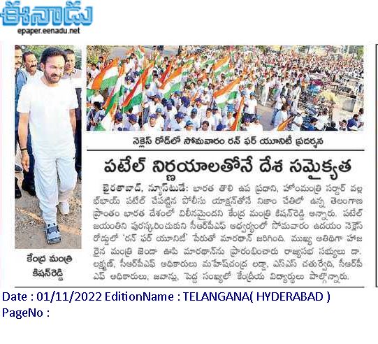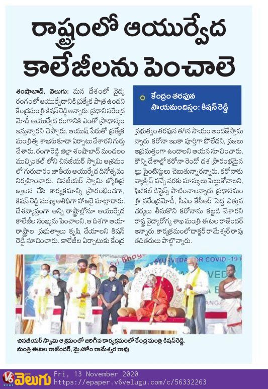 గవర్నర్ హోదాలో కాదు . . . దేశభక్తి తో వచ్చా - కేంద్ర హోం శాఖ సహాయ మంత్రి జి. కిషన్ రెడ్డి – 27.01.2020 ఈనాడు