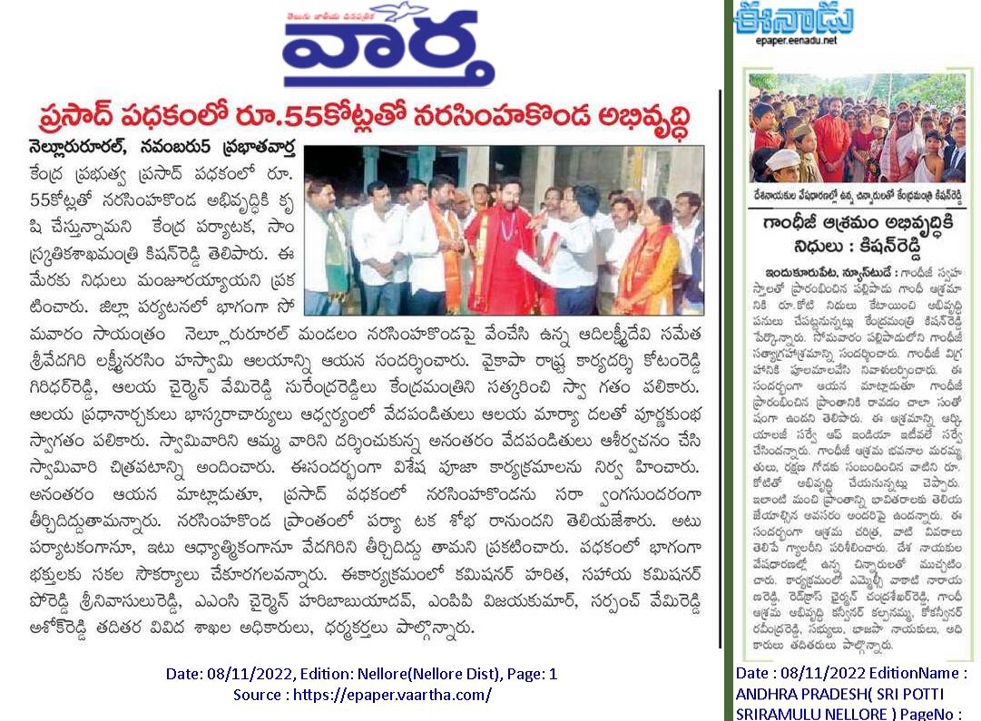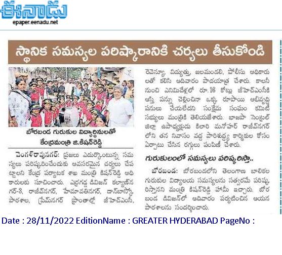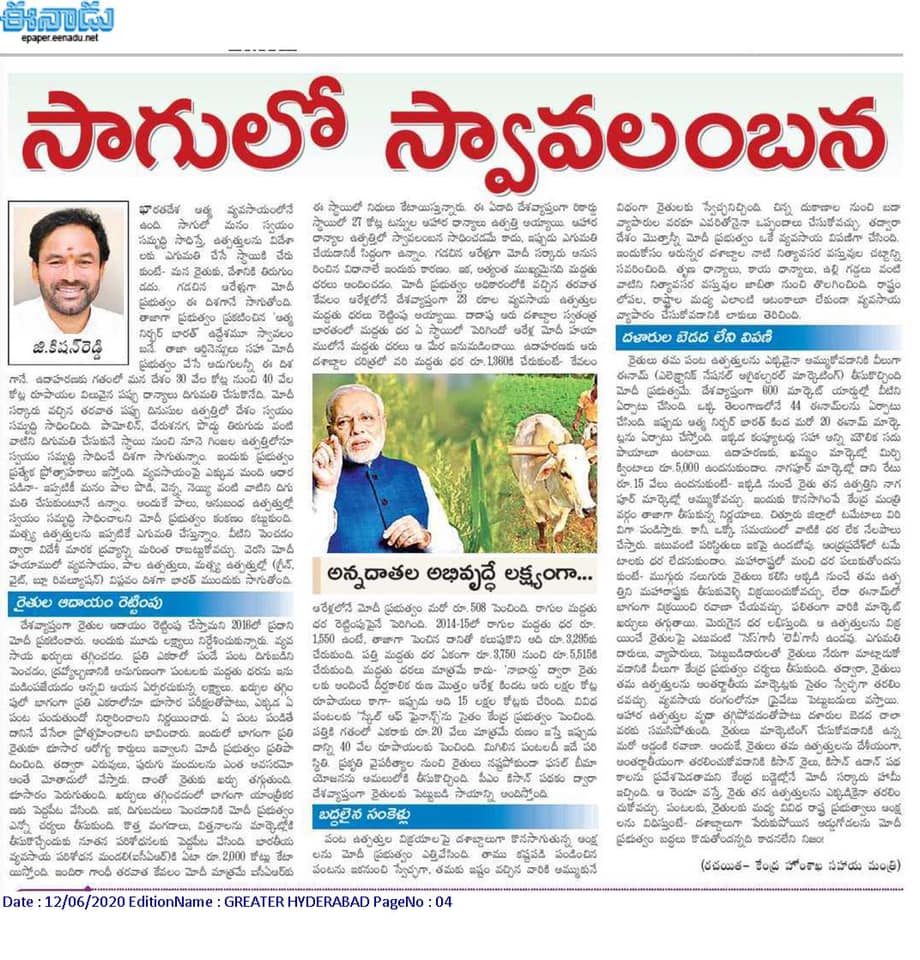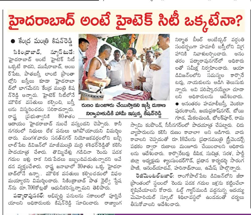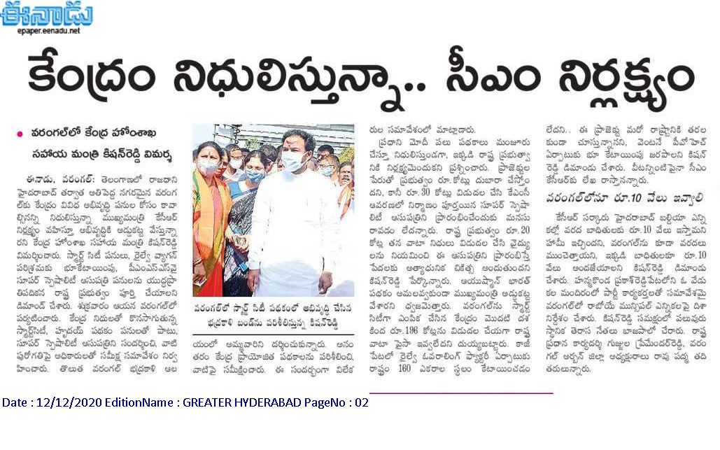 ప్రగతి పనులకు సామాజిక భవనాలే వేదికలు : కేంద్ర హోం శాఖ సహాయ మంత్రి జి. కిషన్ రెడ్డి – 18.02.2020 ఈనాడు