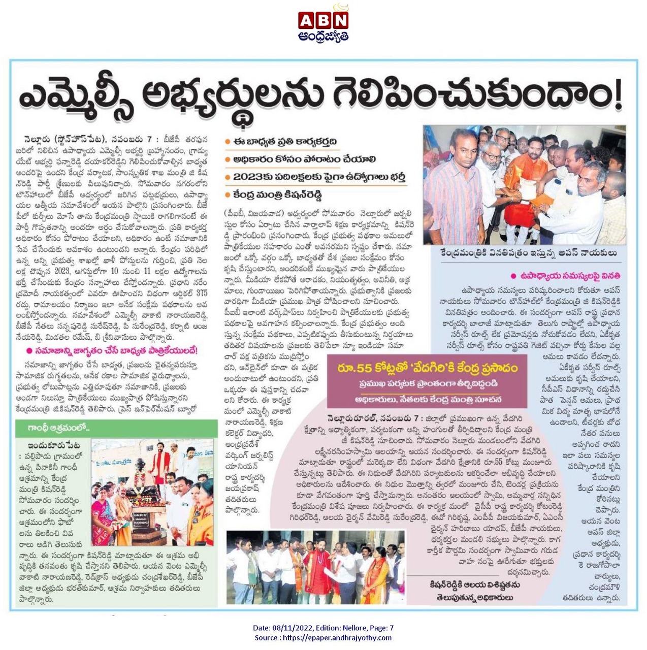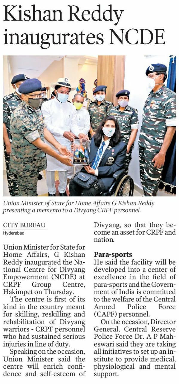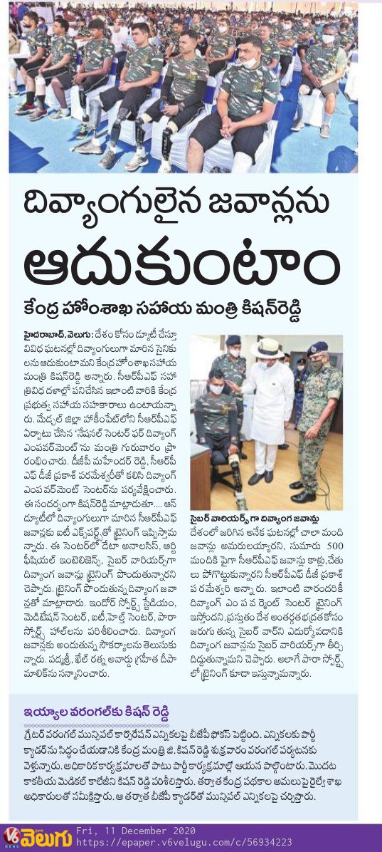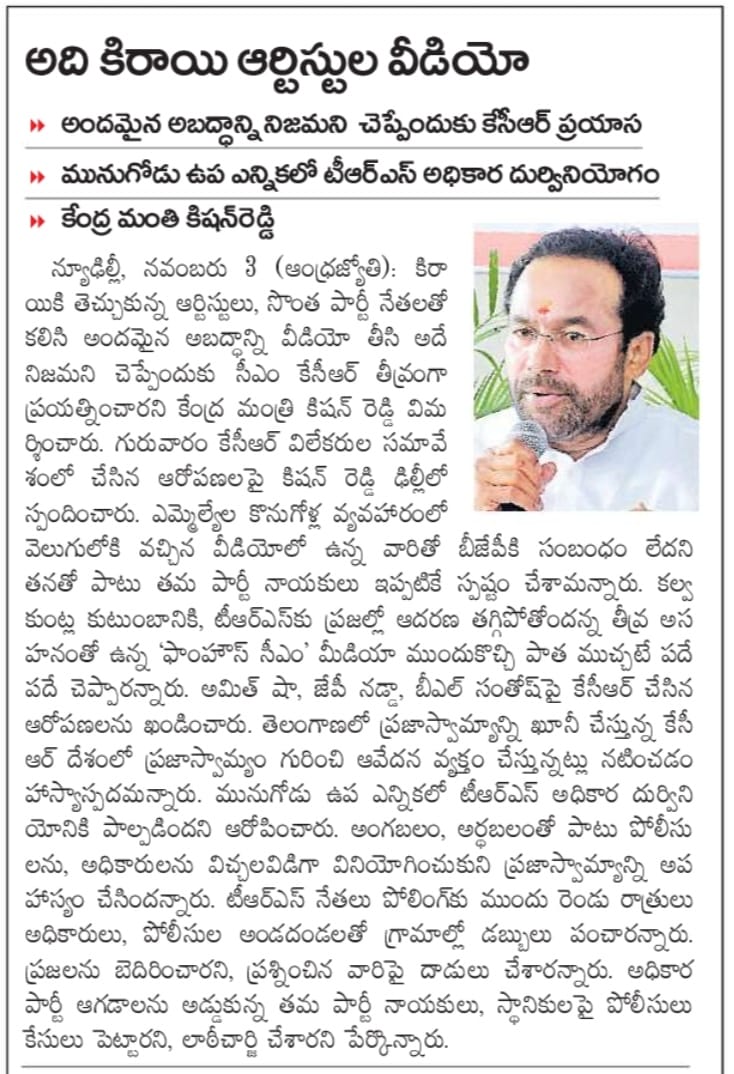 దేశ భద్రతే ప్రభుత్వ లక్ష్యం : కేంద్ర హోం శాఖ సహాయ మంత్రి జి. కిషన్ రెడ్డి - ఆంధ్రజ్యోతి 15.11.2019