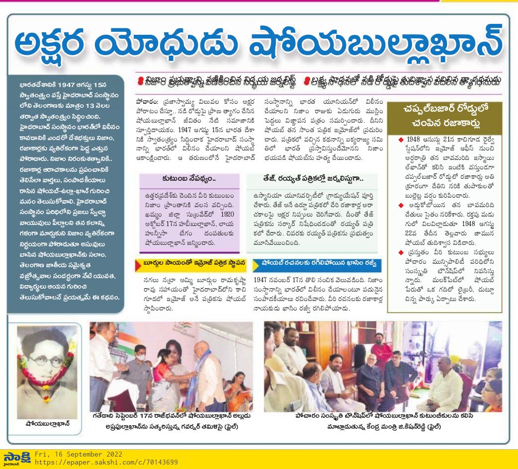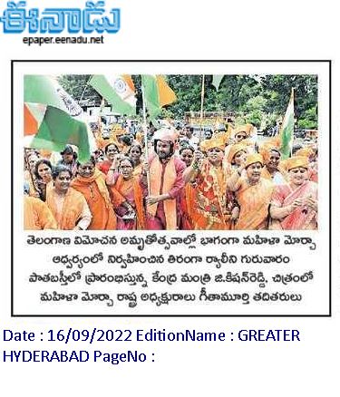 రజాకార్లను ఎదిరించిన ఘనత ఆర్యసమాజ్ ది : కేంద్ర హోం శాఖ సహాయ మంత్రి జి. కిషన్ రెడ్డి - సాక్షి 16.09.2019