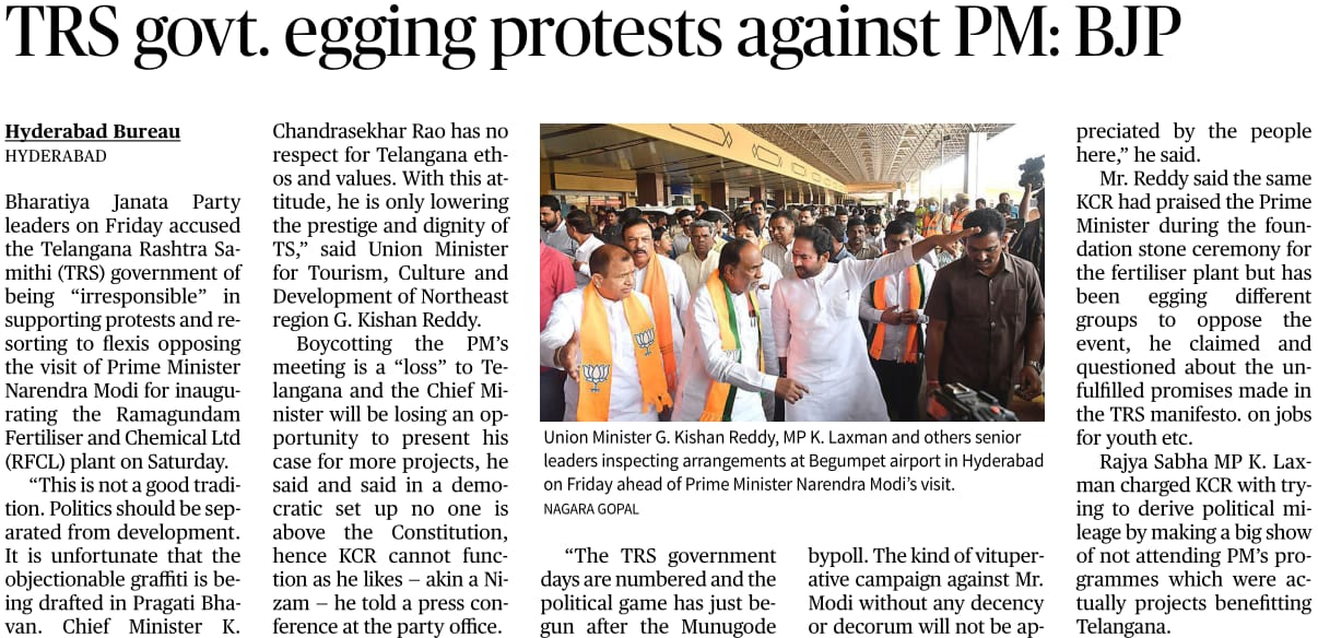 TRS Govt egging protest against PM : BJP