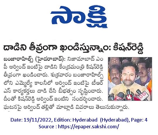 ఎం.పి. అరవింద్ ఇంటిపై దాడిని ఖండిస్తున్నాం.