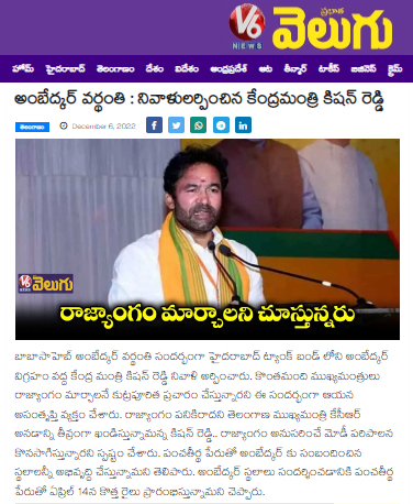 డా.బీఆర్ అంబేడ్కర్ వర్ధంతి సందర్భంగా కేంద్రమంత్రి హైదరాబాద్ లోని ట్యాంక్ బండ్ వద్ద అంబేడ్కర్ విగ్రహానికి పూలమాల వేసి నివాళి అర్పించారు.