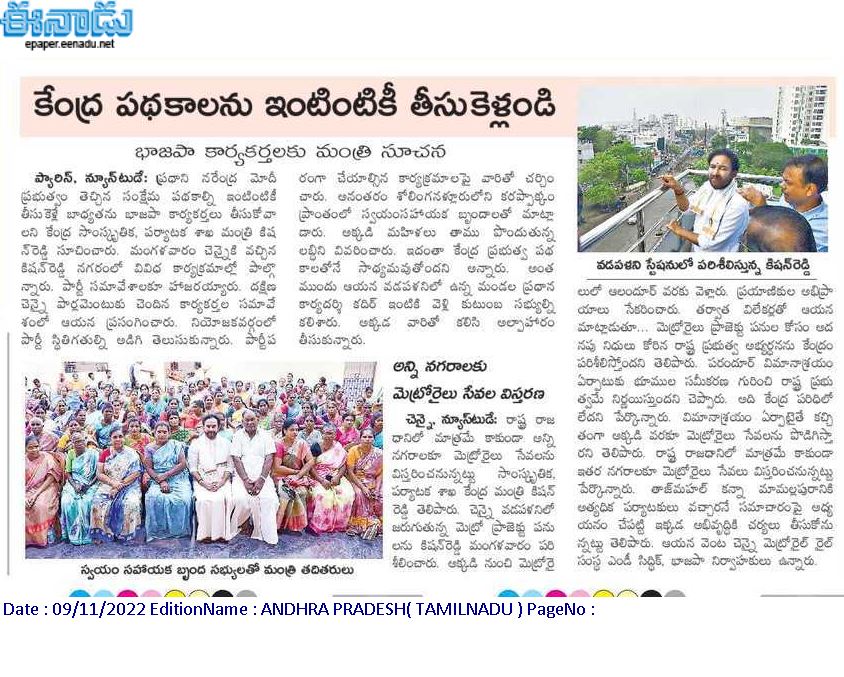 మెట్రో రైల్ సేవలపై నేడు కిషన్ రెడ్డి సమీక్ష : 15.౦2.2020 ఈనాడు