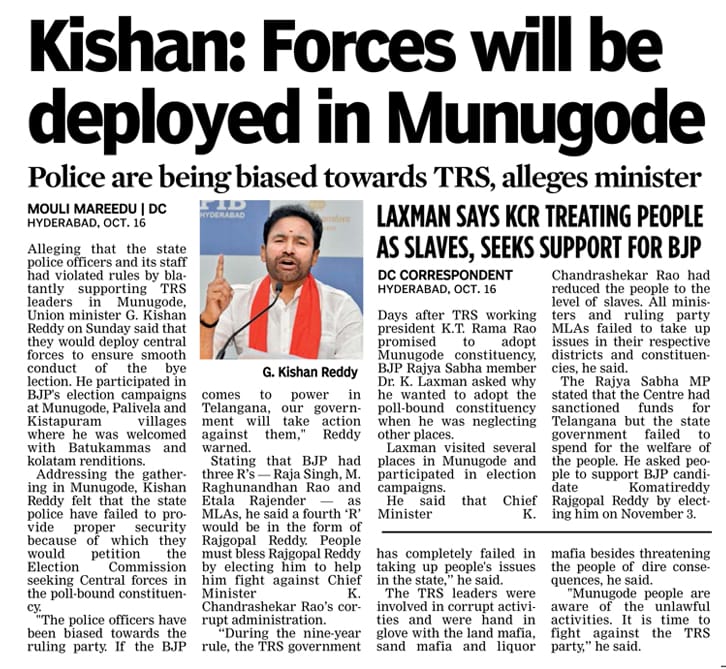 Forces will be deployed in Munugode
