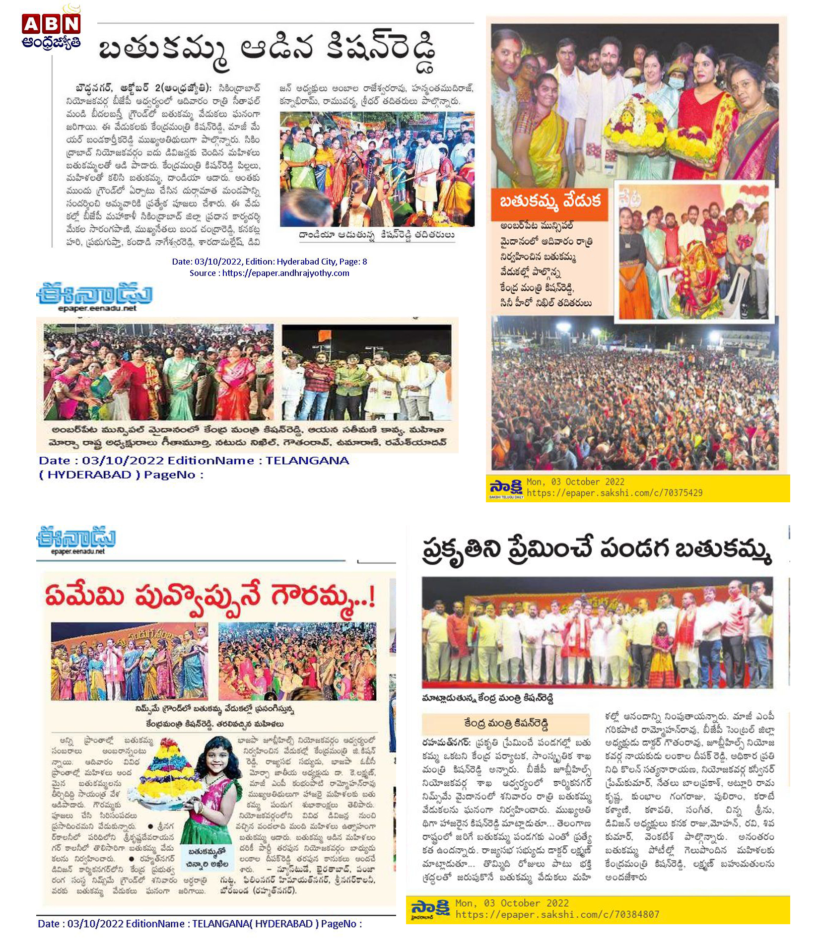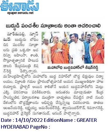 గాంధీ ఆలోచనలు అనుసరణీయం : కేంద్ర హోం శాఖ సహాయ మంత్రి జి. కిషన్ రెడ్డి – ఈనాడు 04.10.2019