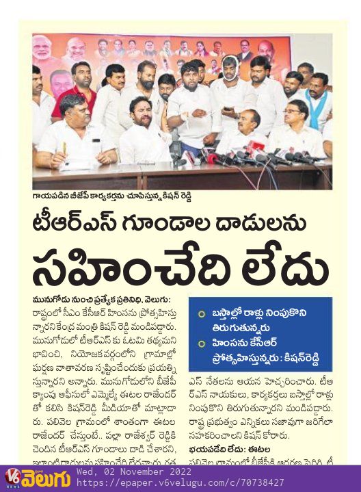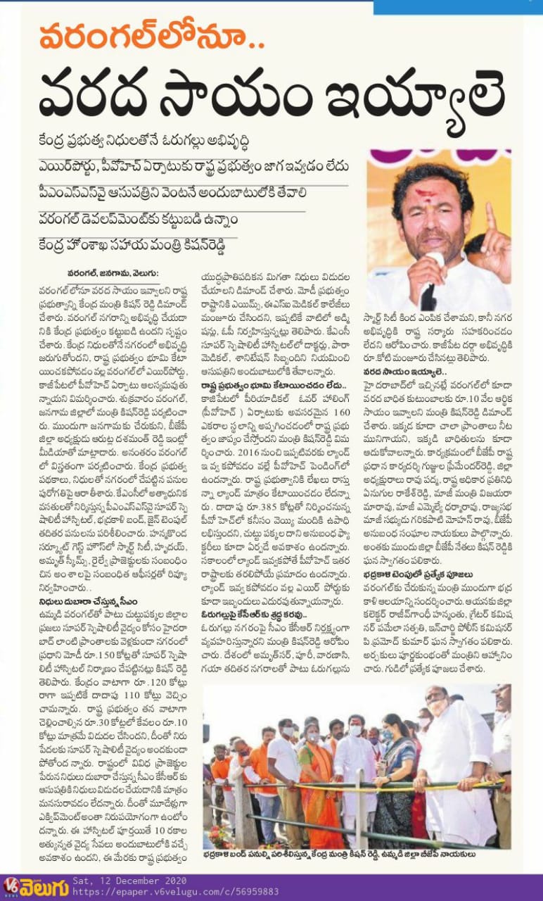 మాంగారు బస్తీ ఘటనకు సర్కారుదే బాధ్యత : కేంద్ర హోం శాఖ సహాయ మంత్రి జి. కిషన్ రెడ్డి – 02.03.2020 వెలుగు