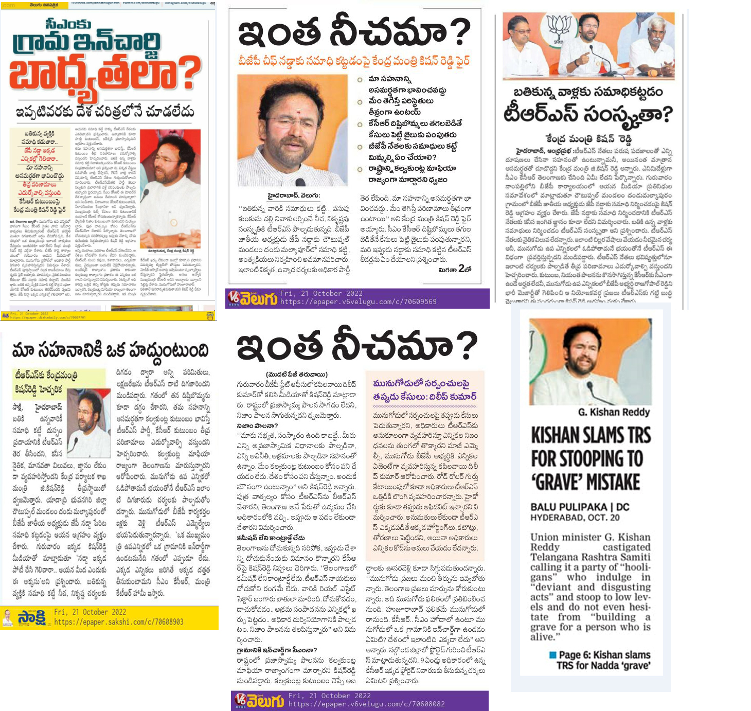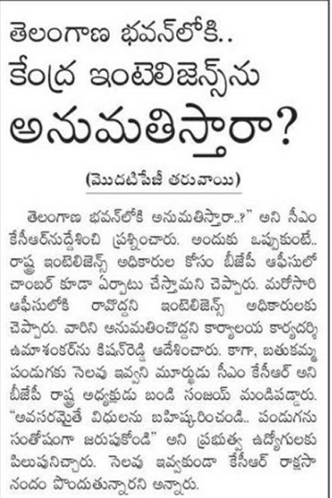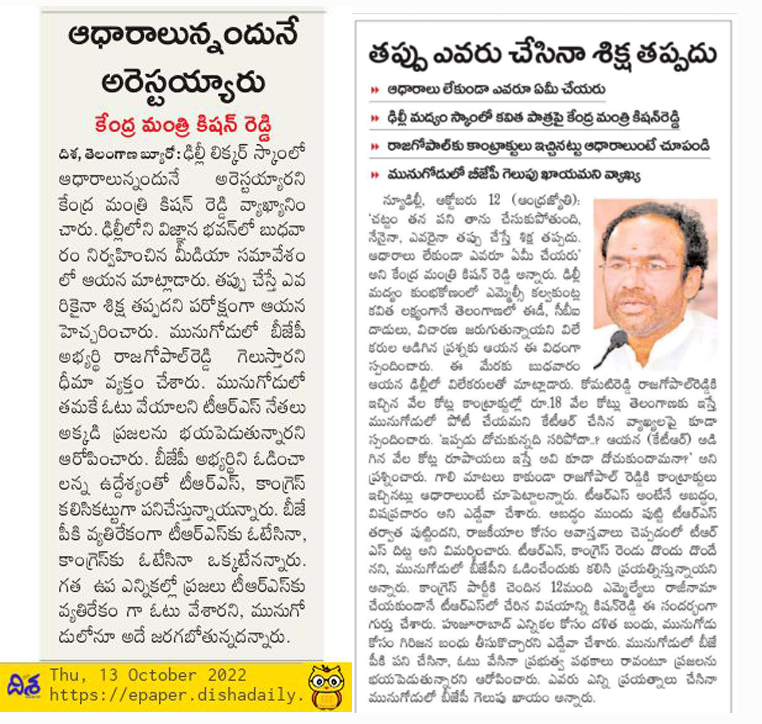 పది సంస్థలకే ఫోన్ల ట్యాపింగ్ అధికారం : కేంద్ర హోం శాఖ సహాయ మంత్రి జి. కిషన్ రెడ్డి - ఆంధ్రజ్యోతి 20.10.2019