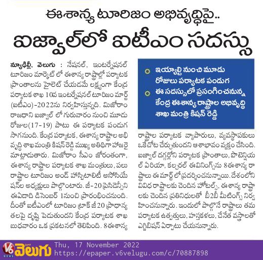 ఈశాన్య టూరిజం అభివృద్ధిపై ఐజ్వాల్ లో ఐటిఎమ్ సదస్సు