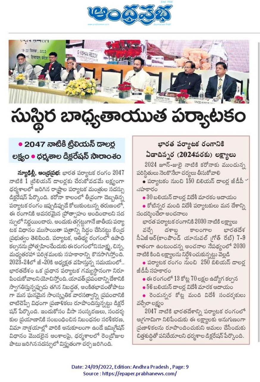 భారత్ బలమైన దేశంగా ఆవిర్భవిస్తోంది : కేంద్ర హోం శాఖ సహాయ మంత్రి జి. కిషన్ రెడ్డి – ఆంధ్రజ్యోతి 24.09.2019
