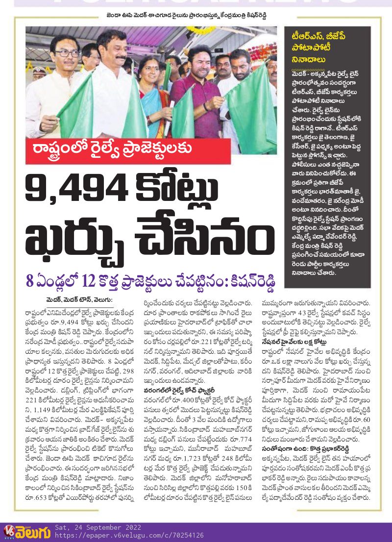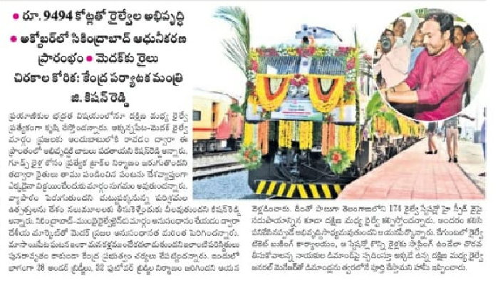 రైల్వే ప్రాజెక్ట్ లు ఇంత ఆలస్యమా ? : కేంద్ర హోం శాఖ సహాయ మంత్రి జి. కిషన్ రెడ్డి – ఈనాడు 27.09.2019