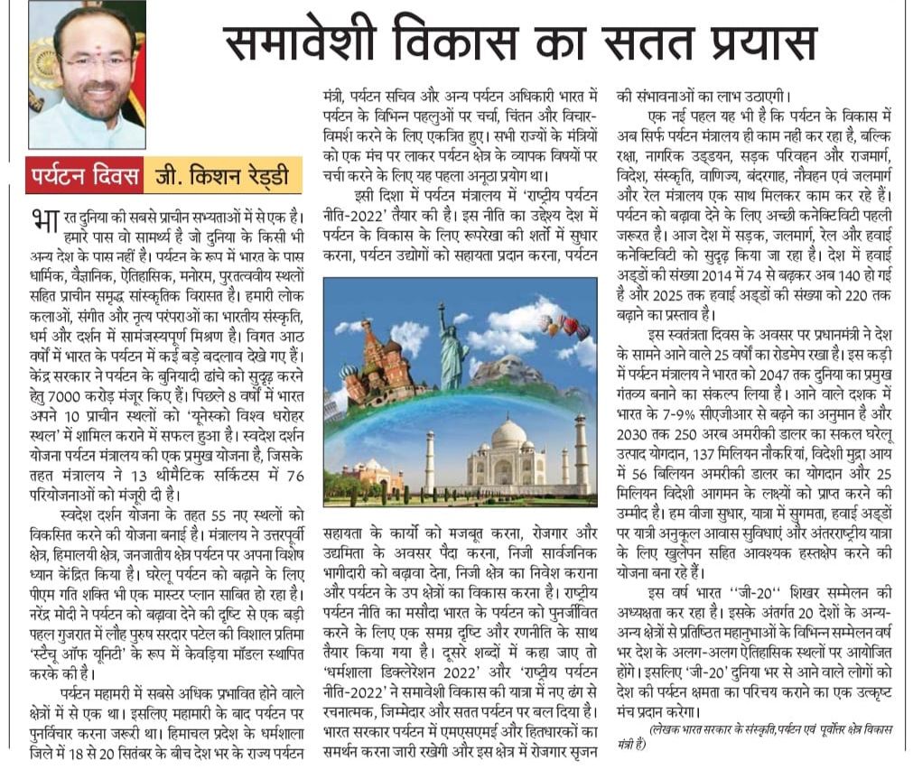 The 'National Tourism Policy' to be rolled out soon : Kishan