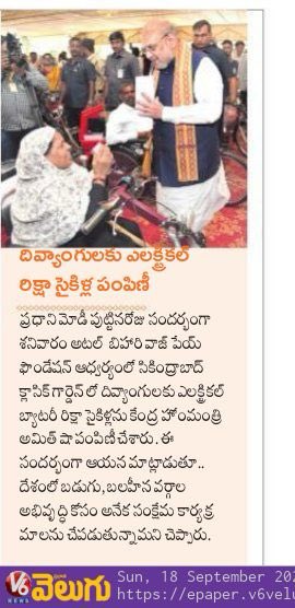 సమాజ సేవలో పాలు పంచుకోవాలి : కేంద్ర హోం శాఖ సహాయ మంత్రి జి. కిషన్ రెడ్డి - సాక్షి 17.09.2019