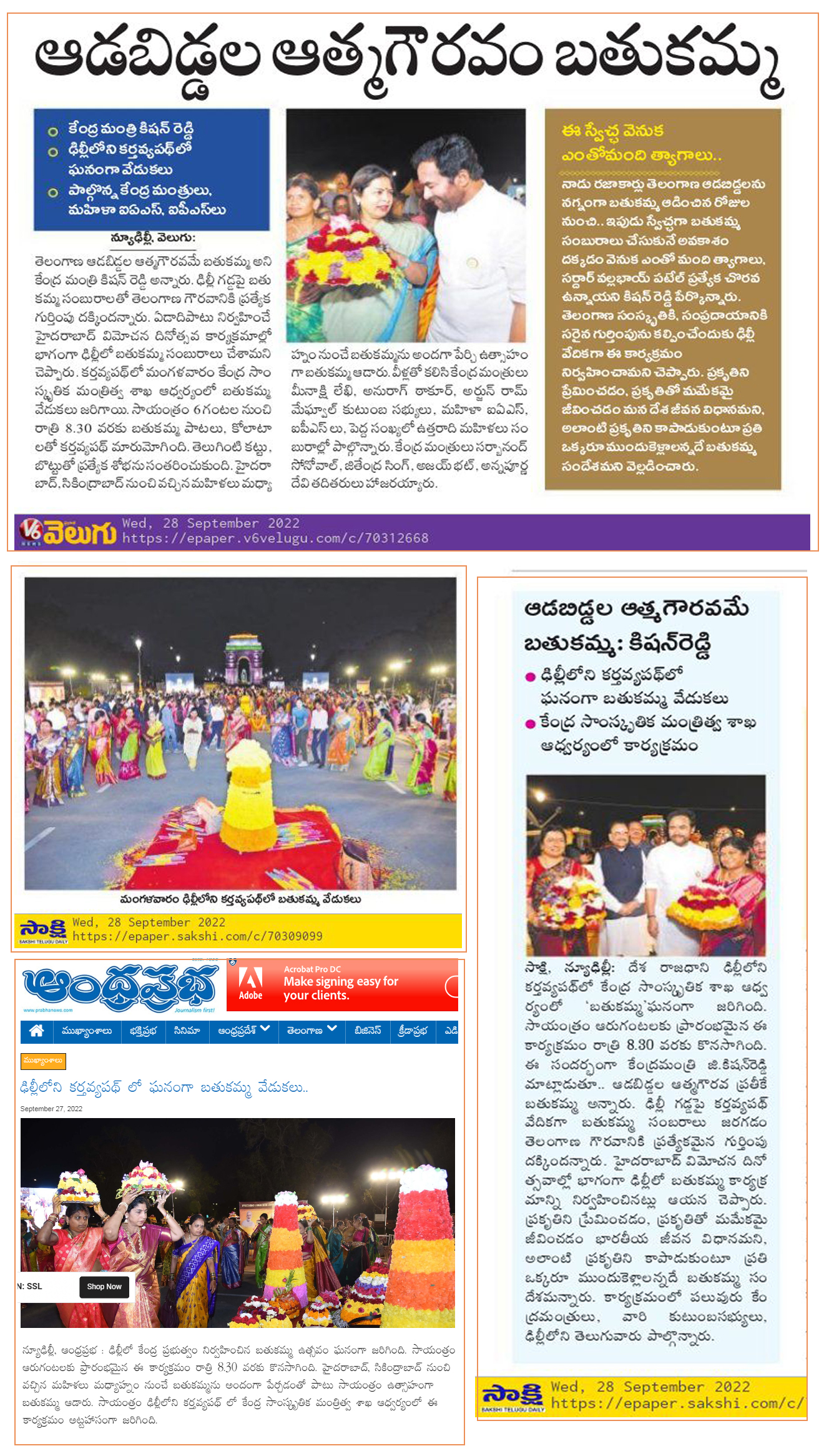 మంగళవారం ఢిల్లీలోని కర్తవ్యపథ్ లో బతుకమ్మ వేడుకలు