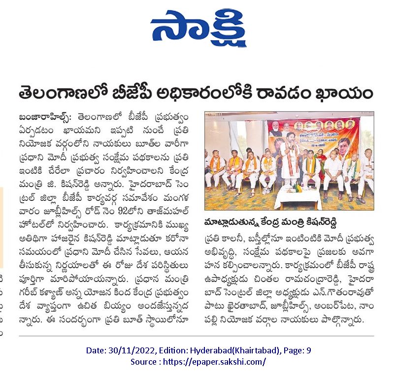 2023లో అధికారమే లక్ష్యం : కేంద్ర హోం శాఖ సహాయ మంత్రి జి. కిషన్ రెడ్డి - సాక్షి 08.06.2019