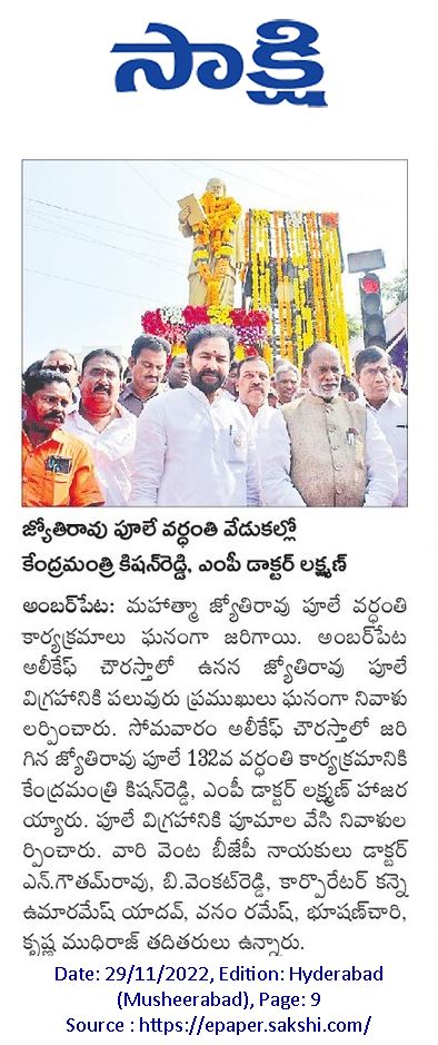 జ్యోతిరావు పూలే వర్ధంతి వేడుకల్లో...