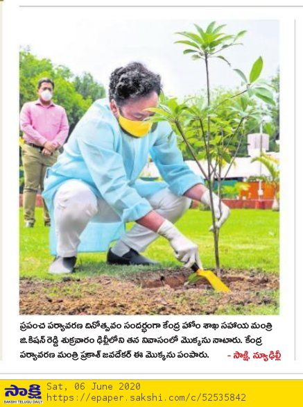 పర్యావరణ పరిరక్షణ అందరి బాధ్యత : కేంద్ర హోం శాఖ సహాయ మంత్రి జి. కిషన్ రెడ్డి - సాక్షి 06.10.2019